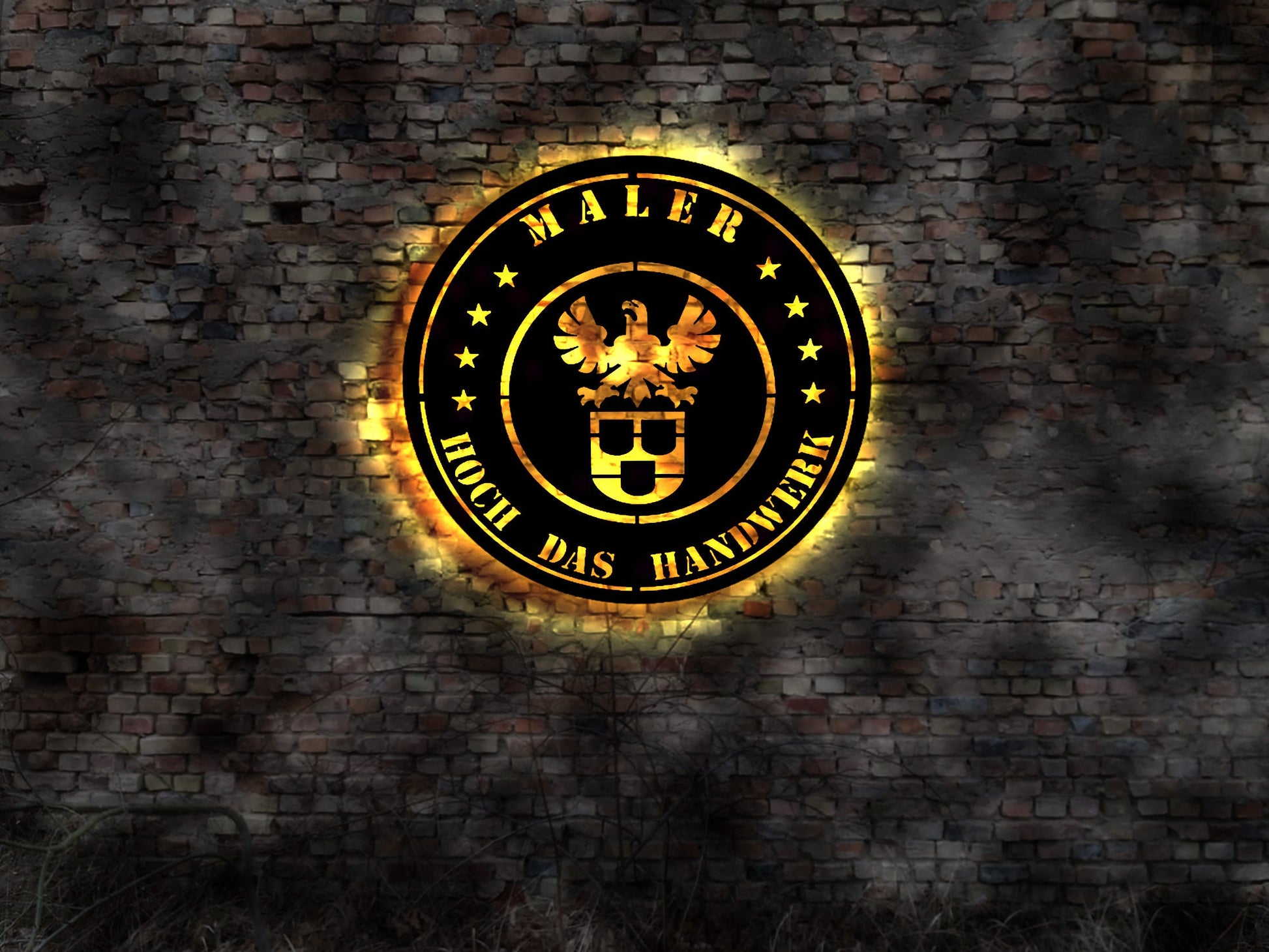 Maler Handwerk Zunft Zeichen Schild Aufkleber Werbung Leiter Pinsel Farbrolle LED Wandbild Neon sign Pinselset Pinsel Farben Geschenk