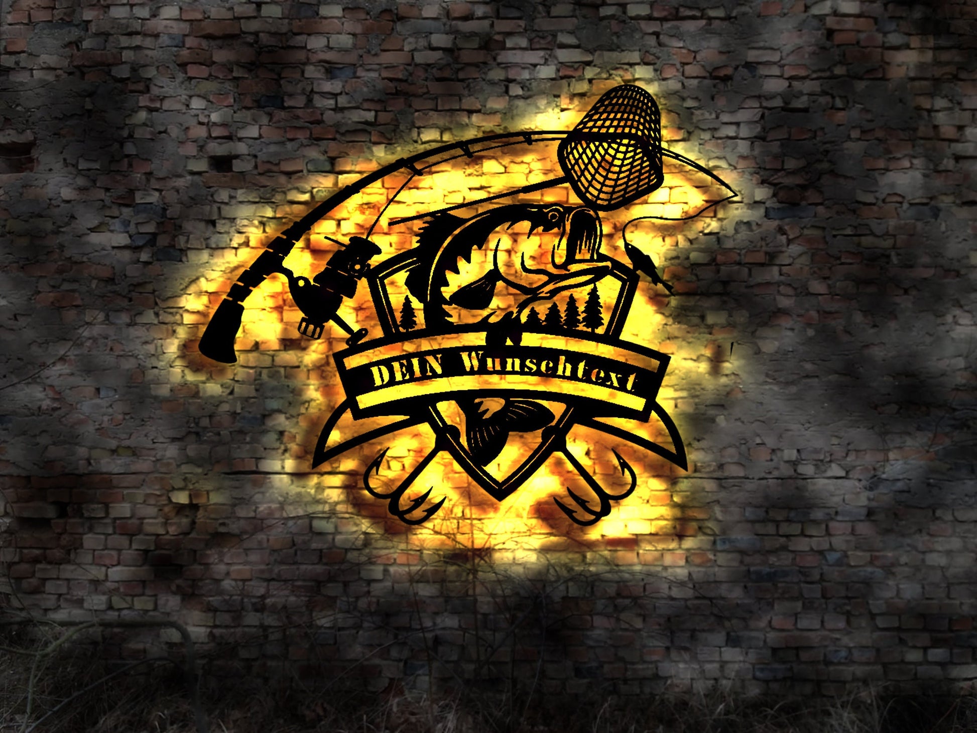 LED Wandbild LED Wandbild Leuchtschild Angler Verein Reklame Angelroute Kescher Angelhaken Hechtköder Drilling Buch Wattwürmer Angelverein