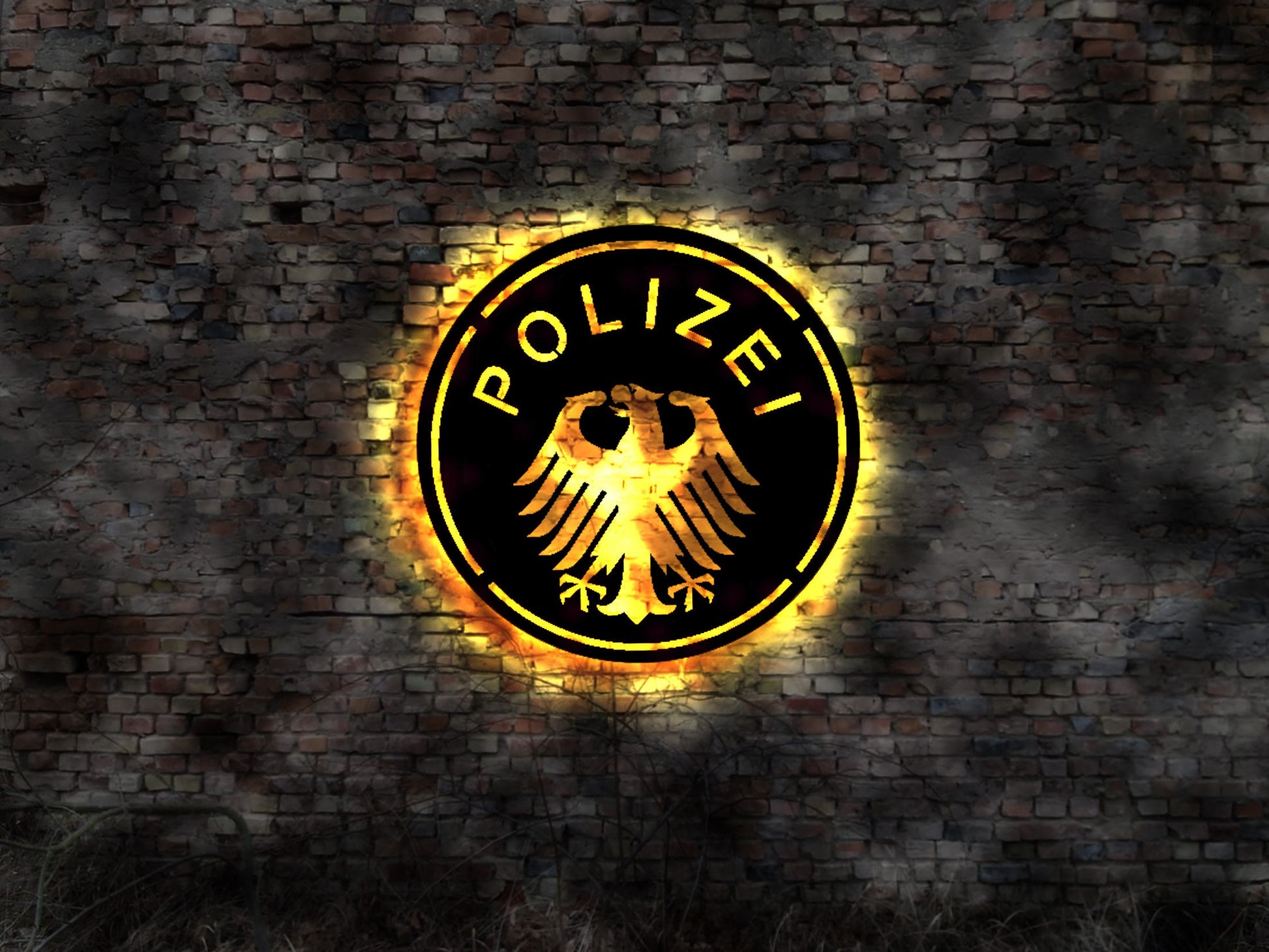 Leuchtschild Schild Polizei Polizeiuniform Mütze Kripo Spurensicherung Blaulicht 110 Notruf Telefon Police Verkehrspolizei Bundespolizei