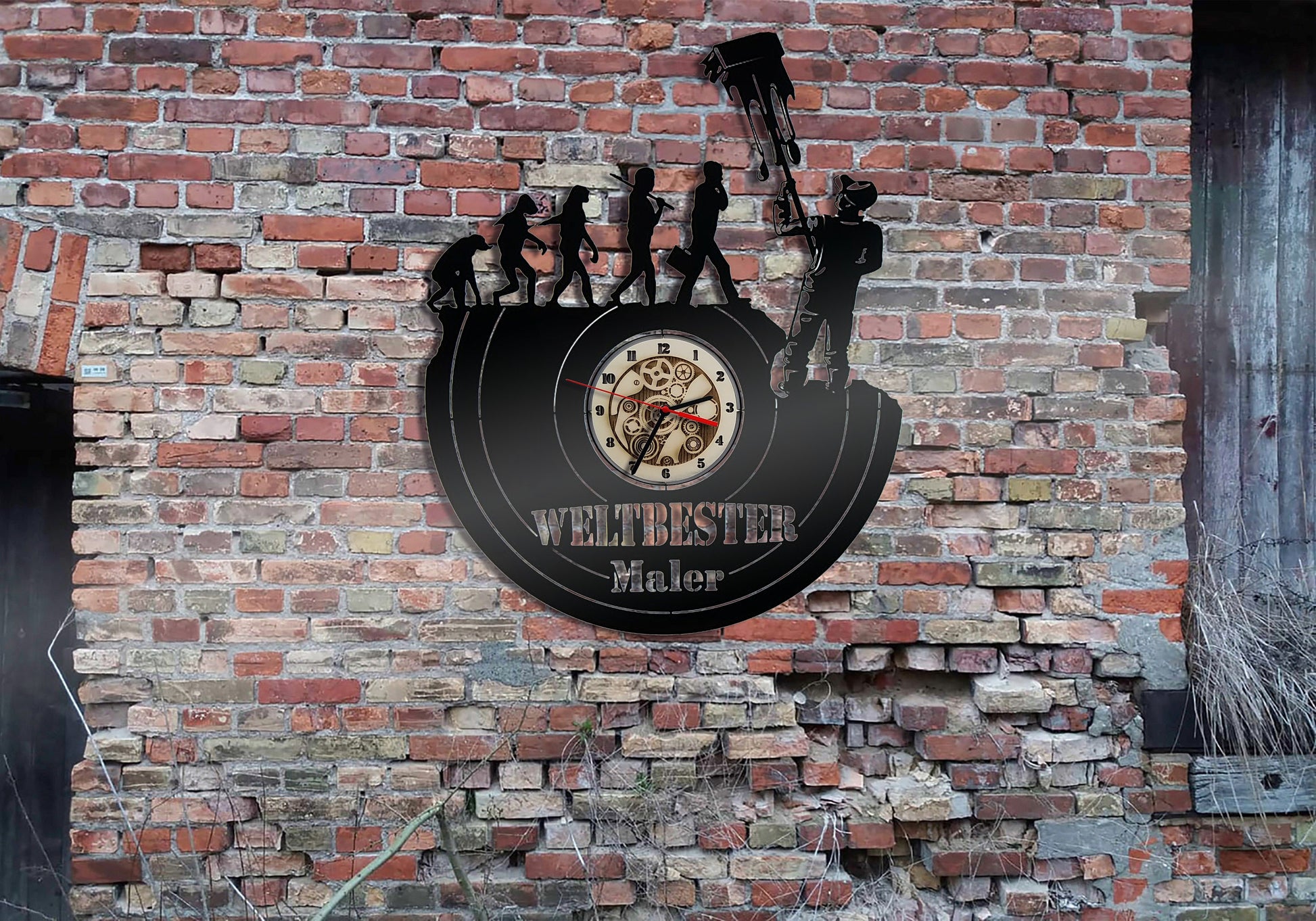 Wanduhr Uhr Holzuhr Uhren Ziffernblatt Maler Handwerk Zunft Zeichen Schild Aufkleber Werbung Leiter Pinsel Farbrolle Firmenschild Jubiläum