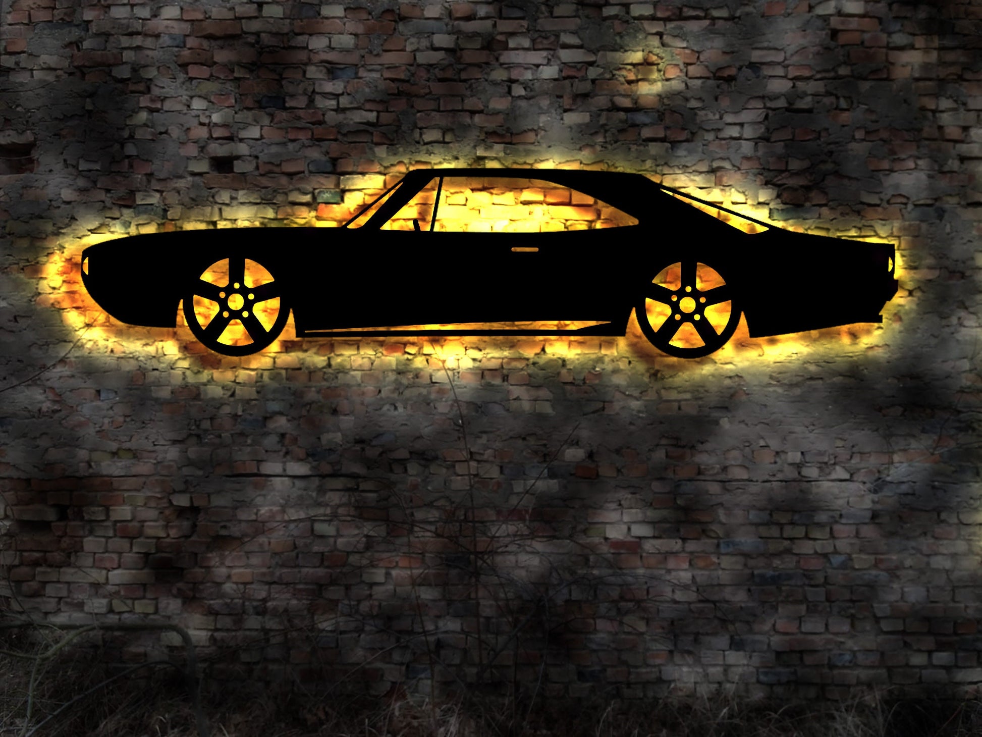 LED Oldtimer US Car Wunschtext V8 Motor Bild Aufkleber Wandlampe LED Wandbild Neon sign Werbung Leuchtschild Bardeko BarSchild