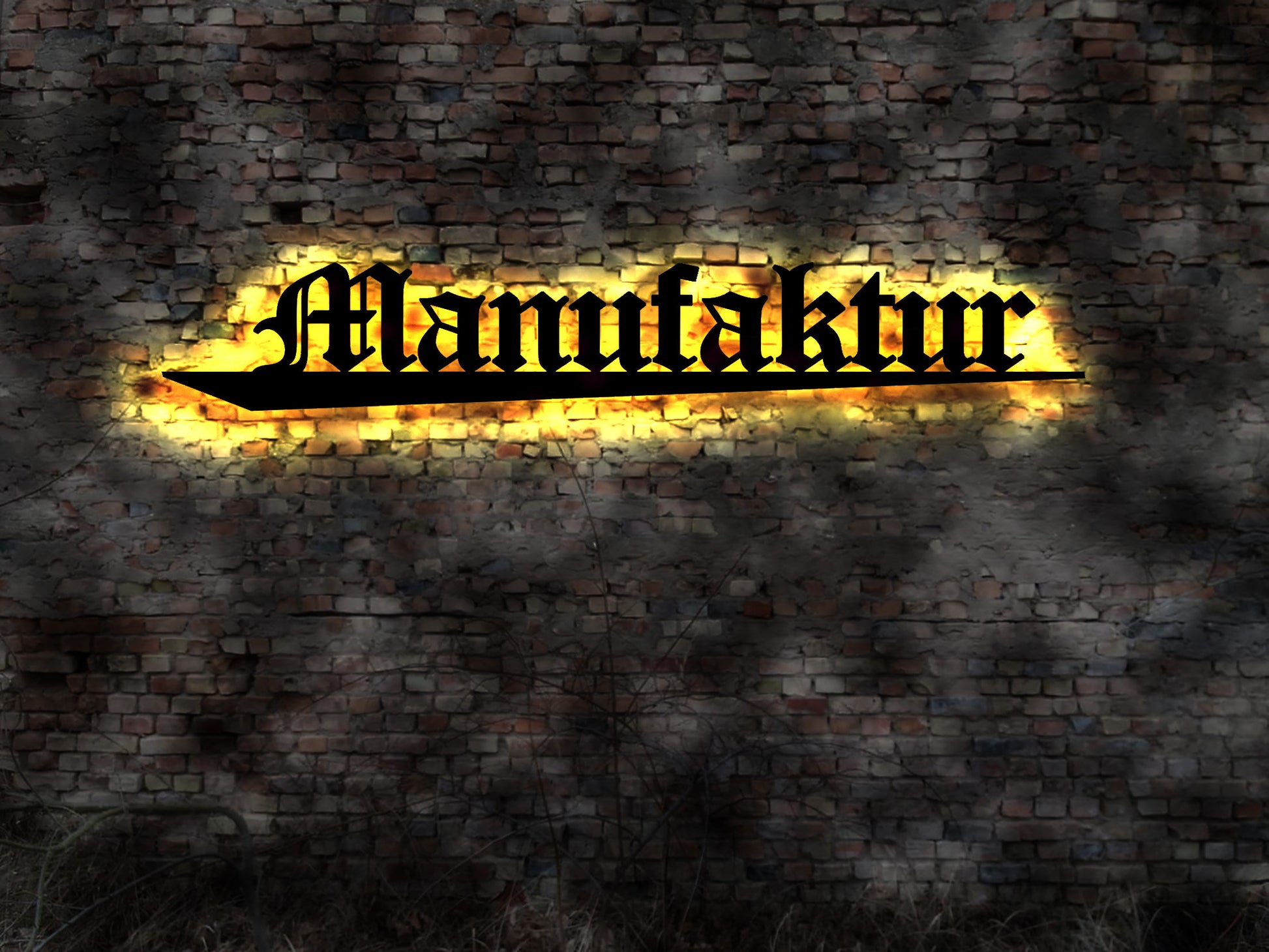 Manufaktur Schild Werkstatt Werkstattschild Aufkleber Sticker beleuchtet Deko sign