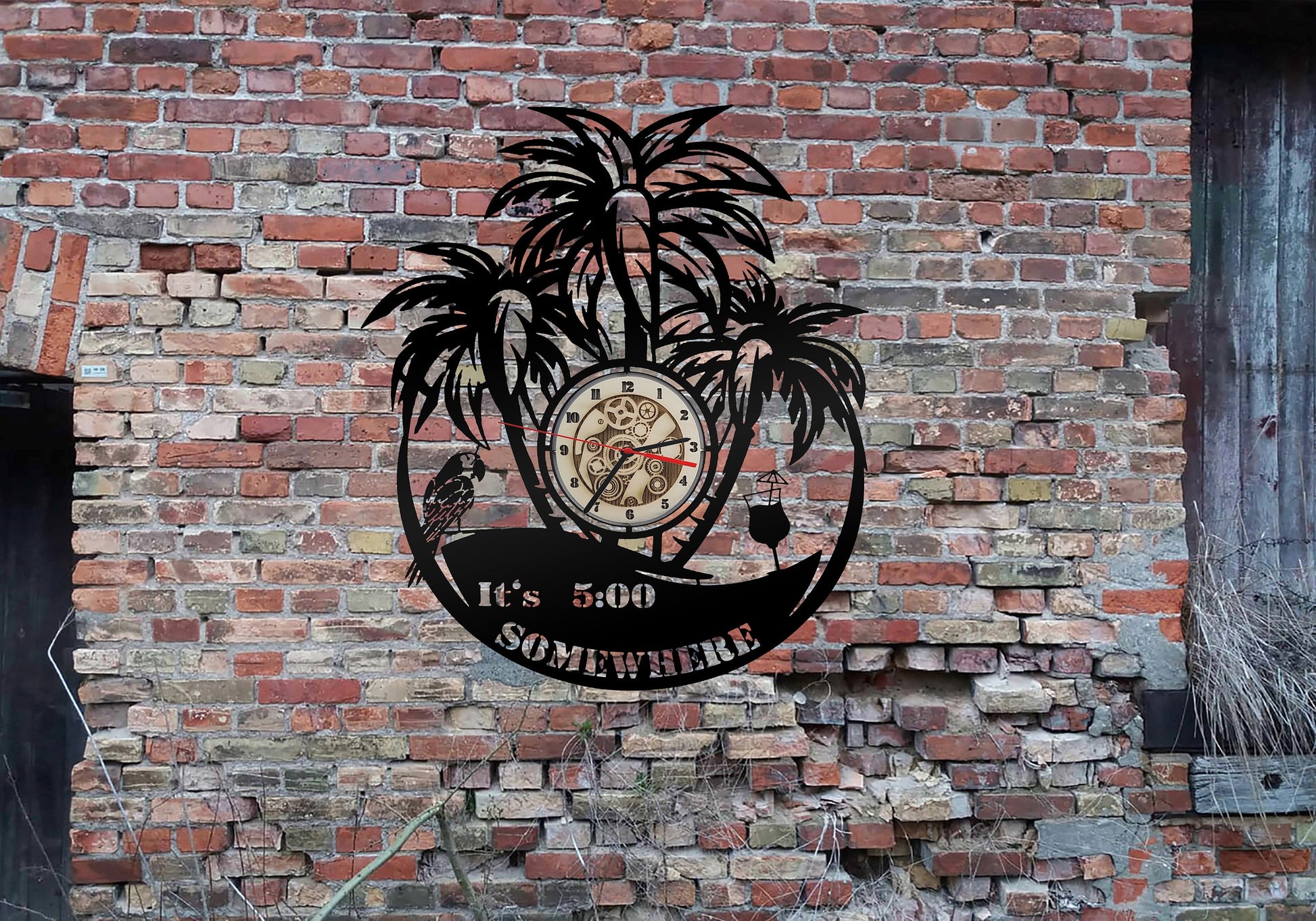 Wanduhr Uhr Papagei Palmen Its 5 o clock somewhere