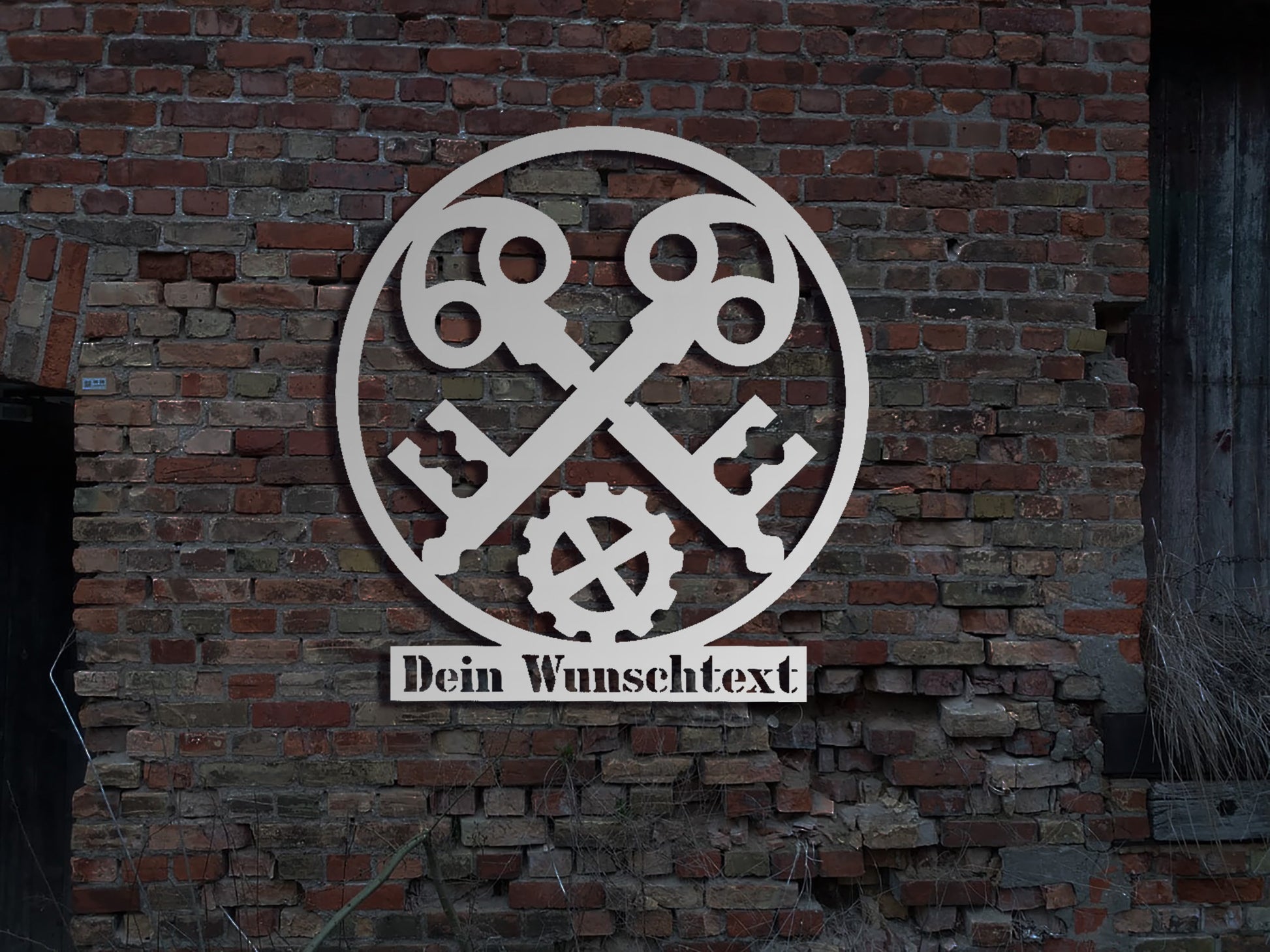 Edelstahl Wandbild Schild Schlosserei Schlosser Metallbau Metallbauer Innungsschild Logo Emblem Zeichen Zunft sign Metallschild Stahlschild