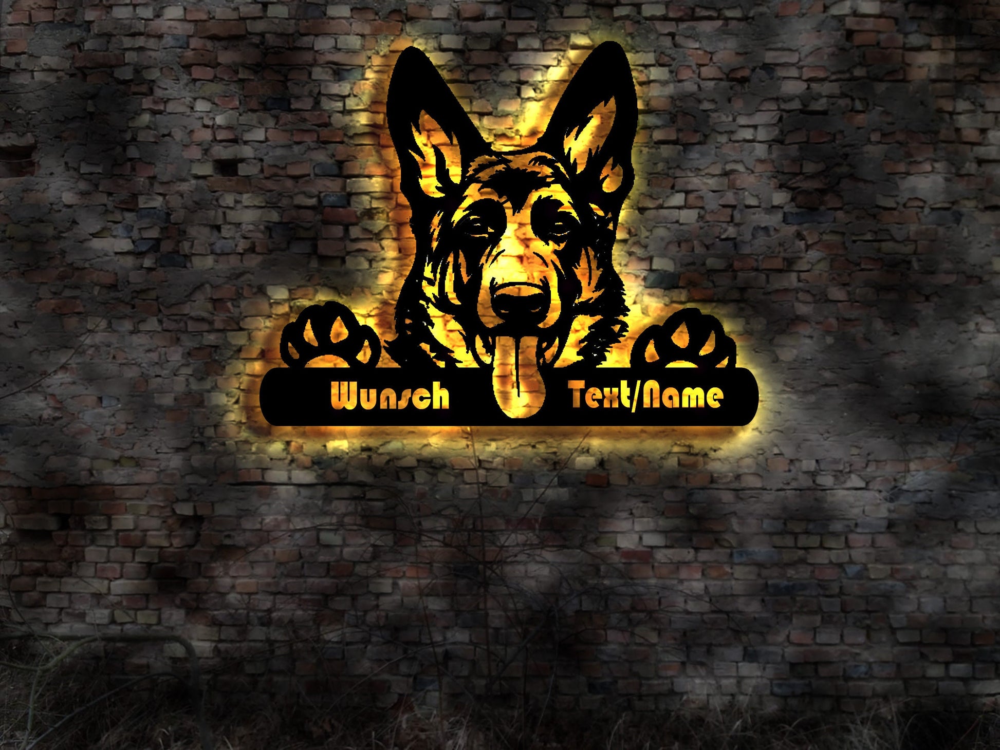 Deutscher Schäferhund DSH LED Wandbild aus Holz Welpen Welpe Buch Hund Dog Zucht Züchter Führleine Plüschtier Skulptur Spielzeug
