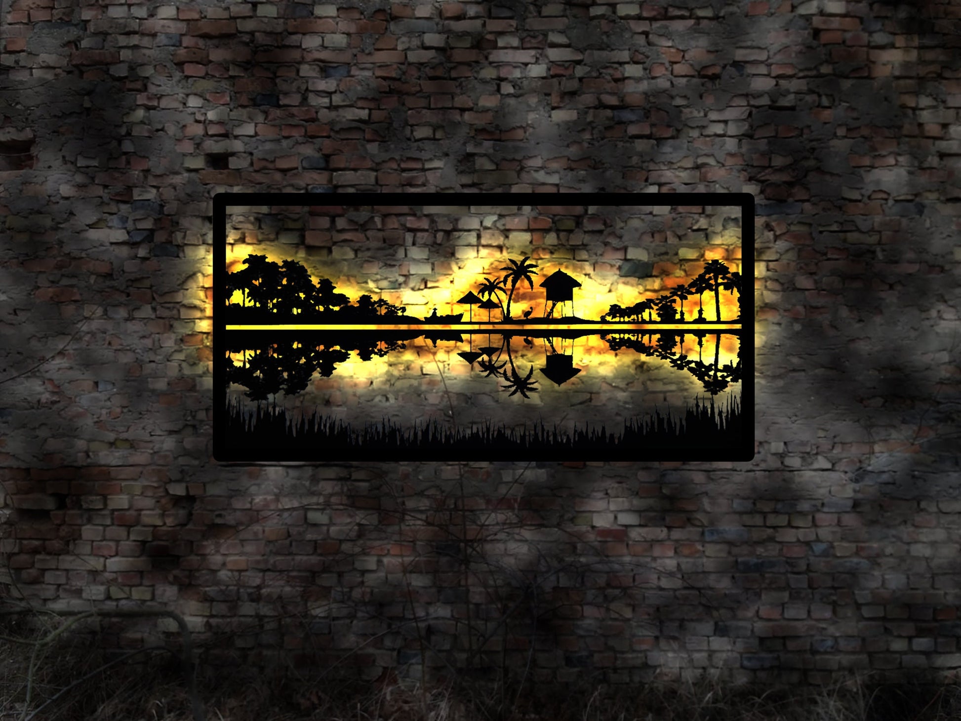 Wunschtext Palmen Abendstimmung Skyline Savanne Sonnenuntergang LED Wandbild Holz romantisches Wandtattoo Reiseführer Silhouette