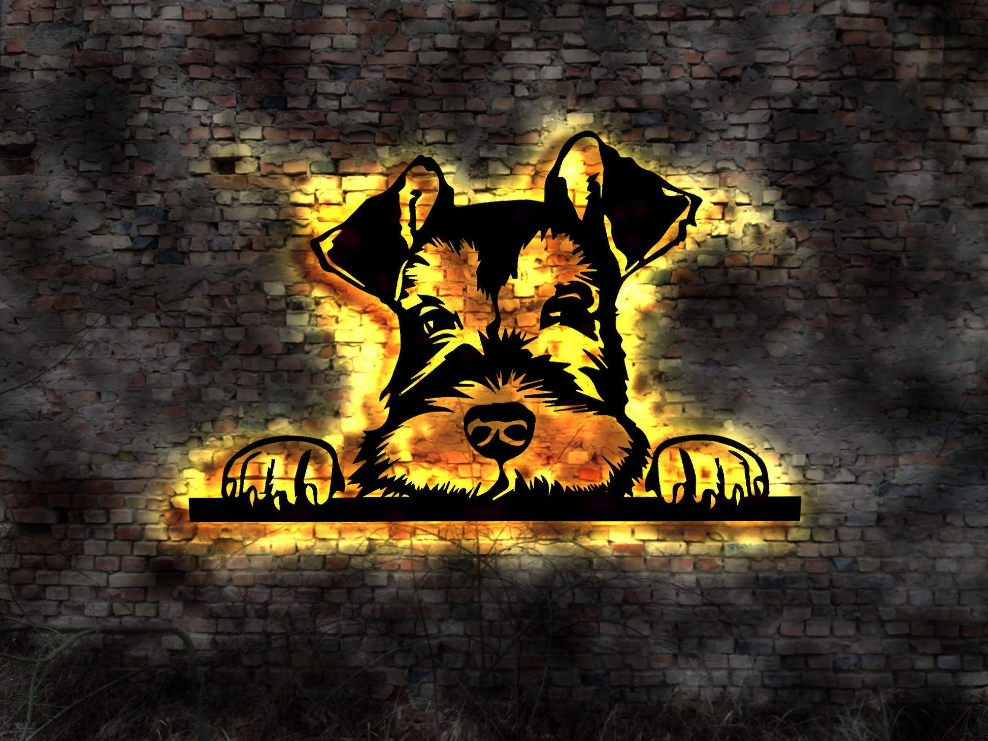 Schnauzer Schnautzer Riesenschnauzer LED Wandbild aus Holz Welpen Welpe Buch Hund Dog Zucht Züchter Führleine Plüschtier Skulptur Spielzeug