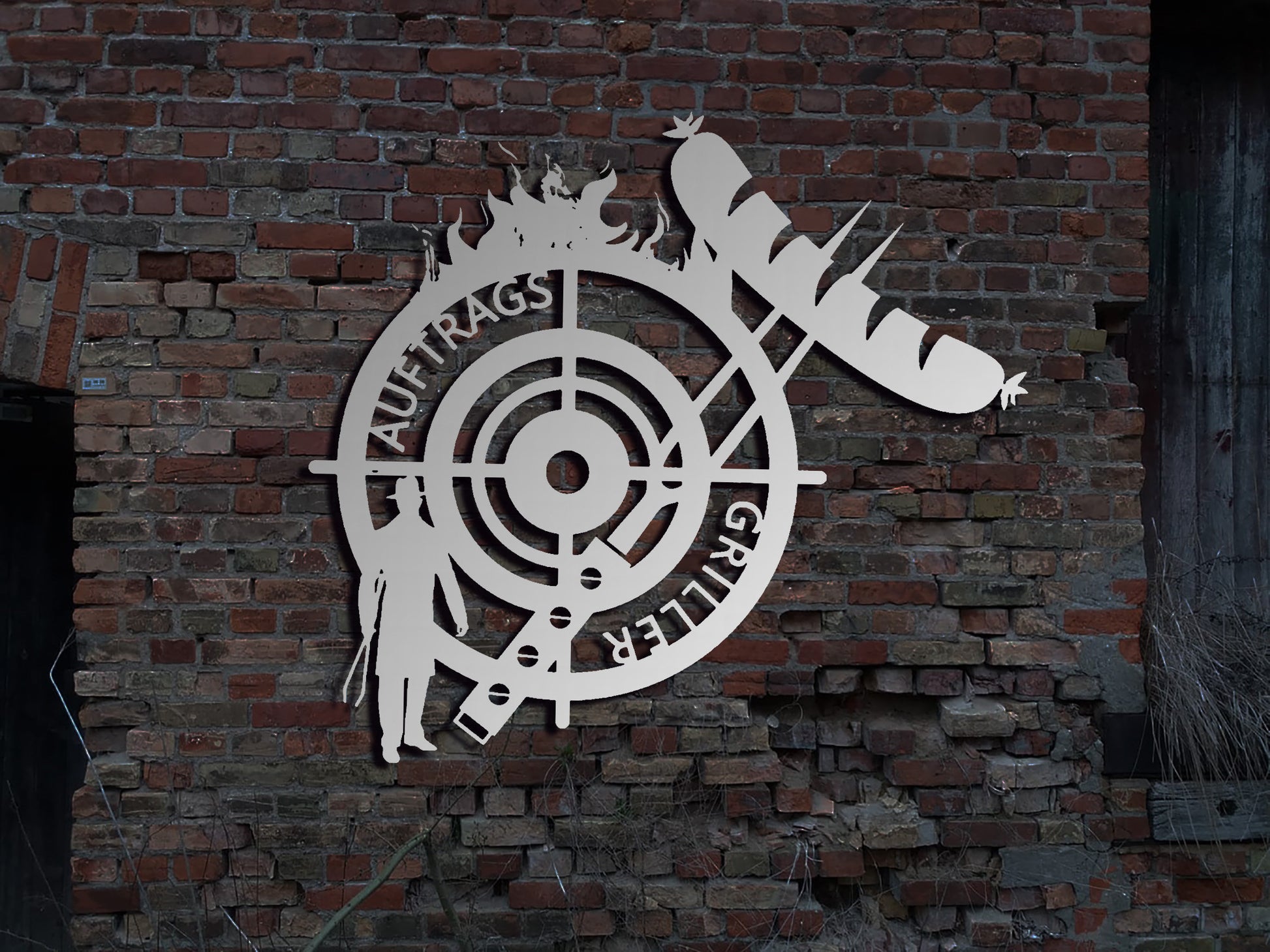 Edelstahl WandbildSchild Wandbild Holzkohle grillen Grillbesteck Grillhandschuhe Grillkohle Grillspieße Grillbürste Grillpfanne