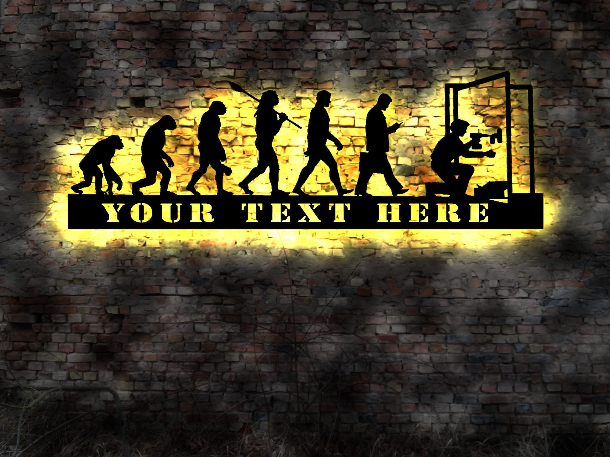 Made of wood. Sign will be hanged with a little distance to the wall.