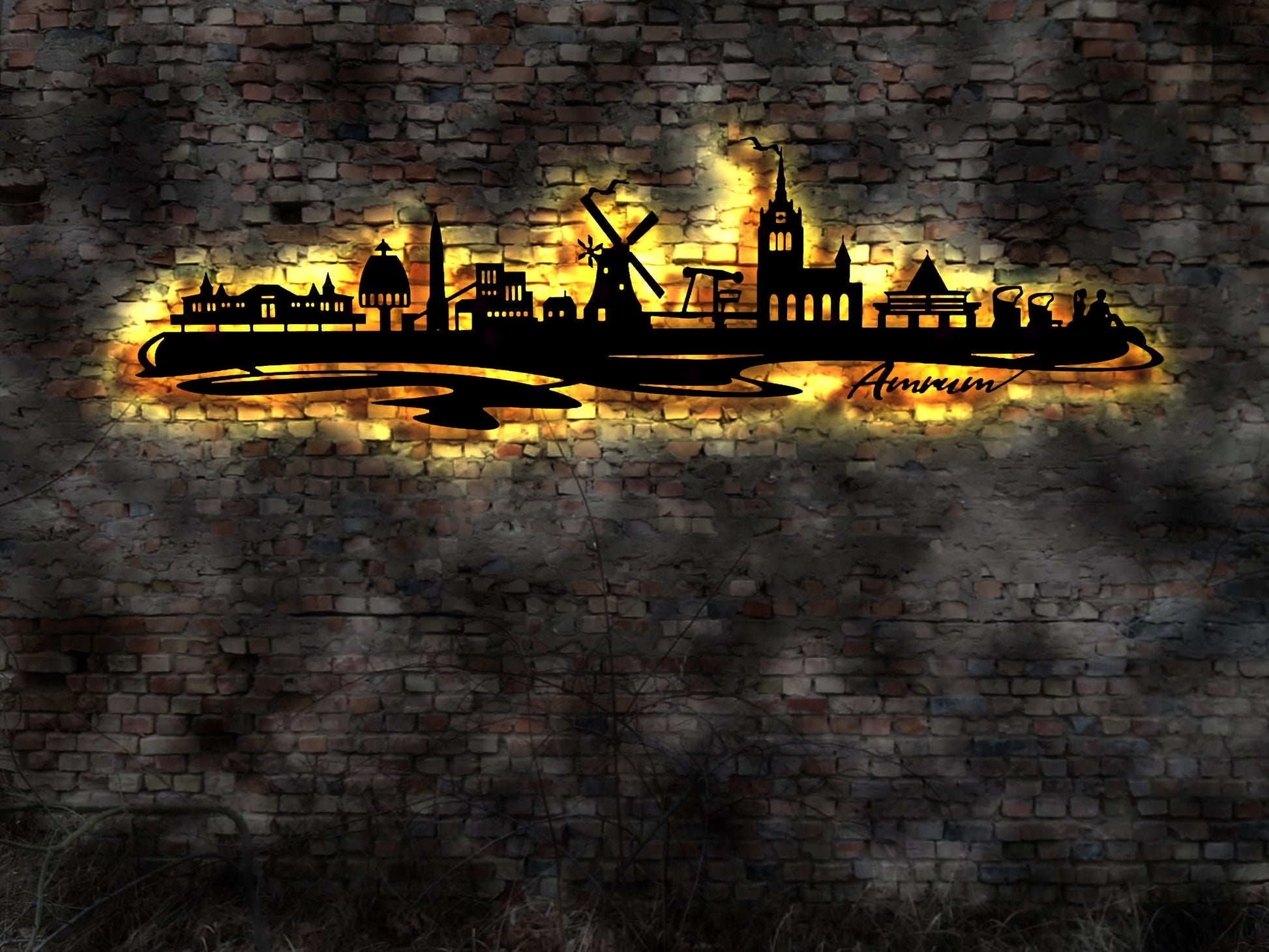 Skyline Amrum Insel Island Urlaub LED Wandbild Holz Stadt AK Karte Map Wandsticker Leuchtbild Neonreklame Wandtattoo Reiseführer Silhouette