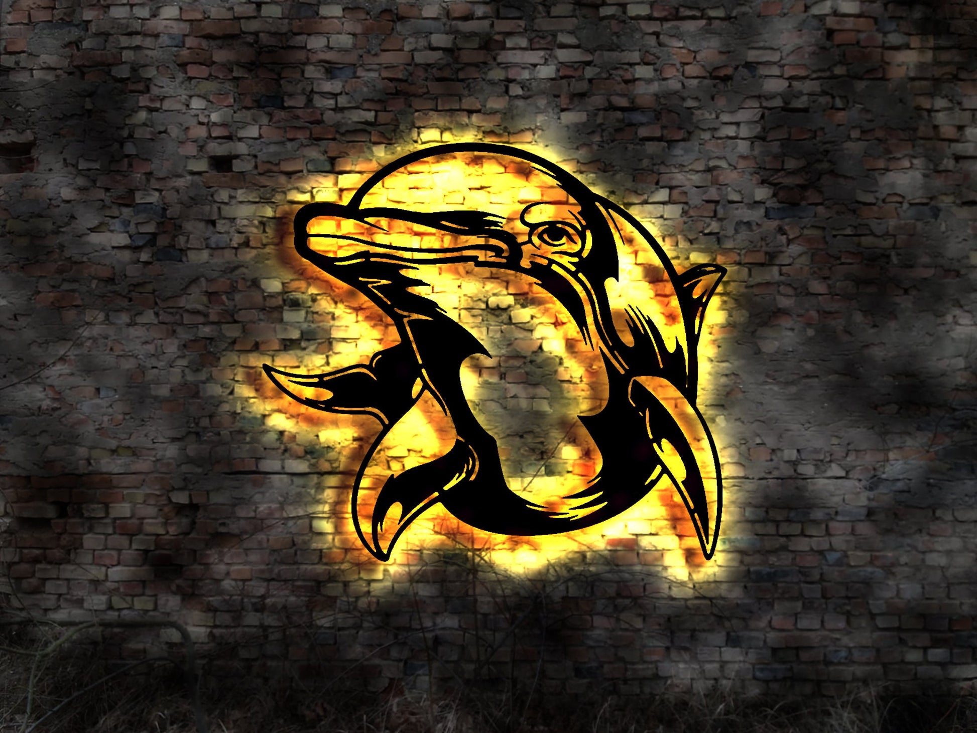 LED Schild Sign Leuchtreklame Delphin Delphine Delfin Säugetier Meer Bilder Bild Gemälde Reklameschild sign Holzdeko
