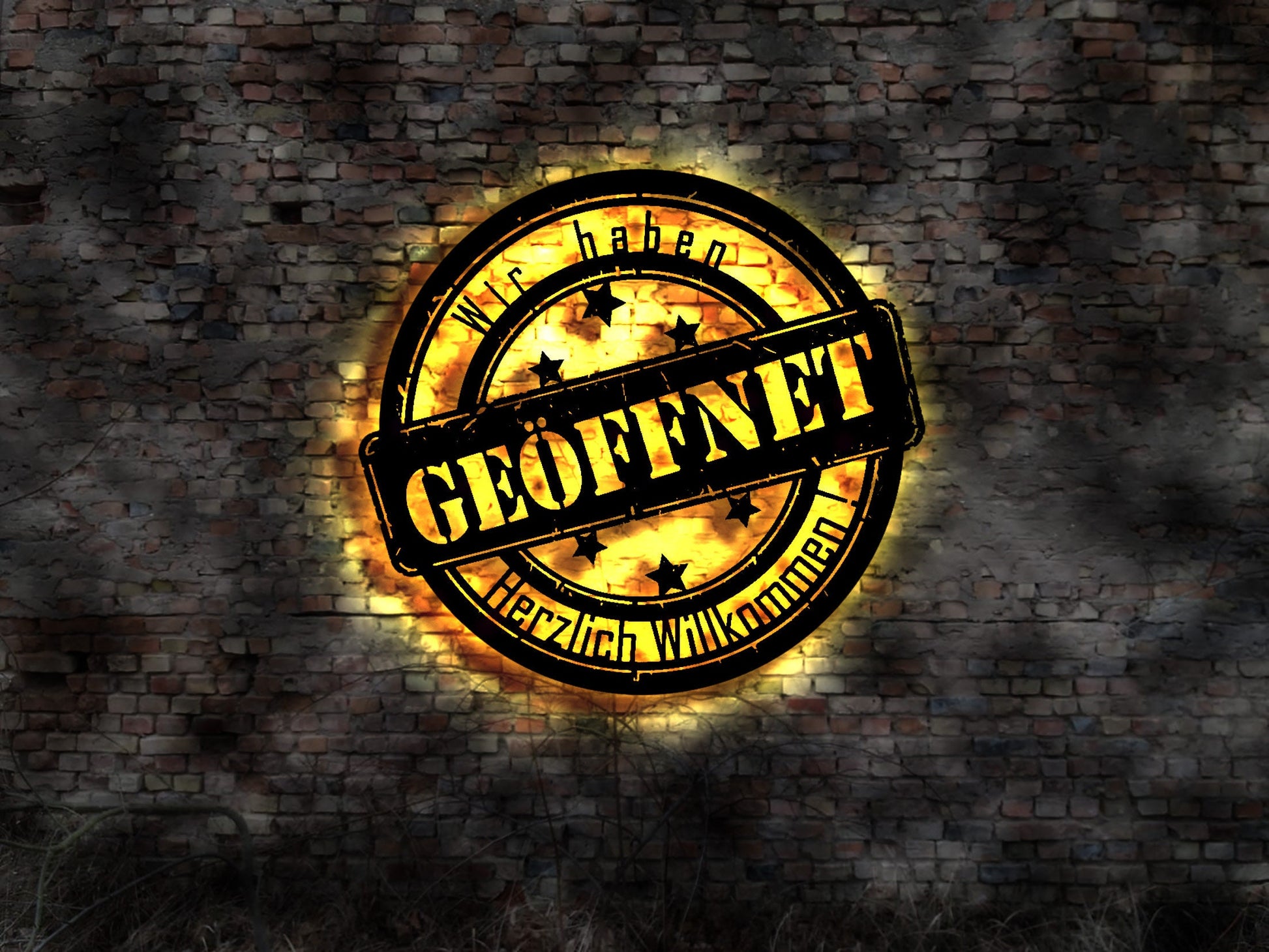 Geöffnet Open Geschäft Laden LED Leuchtschild Schild Deko Zeichen Bild sign Ladengeschäft store Omas Laden Kiosk Öffnungszeiten Vintage
