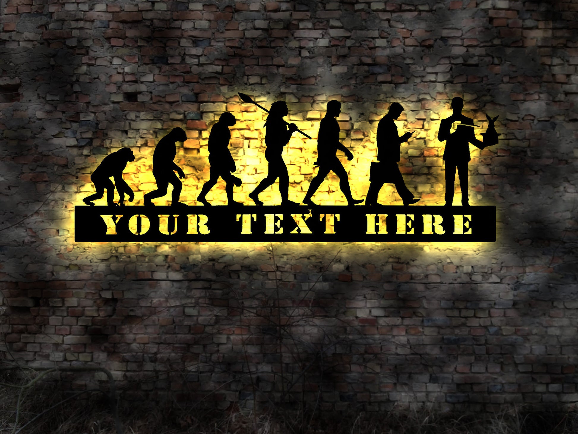 Made of wood. Sign will be hanged with a little distance to the wall.