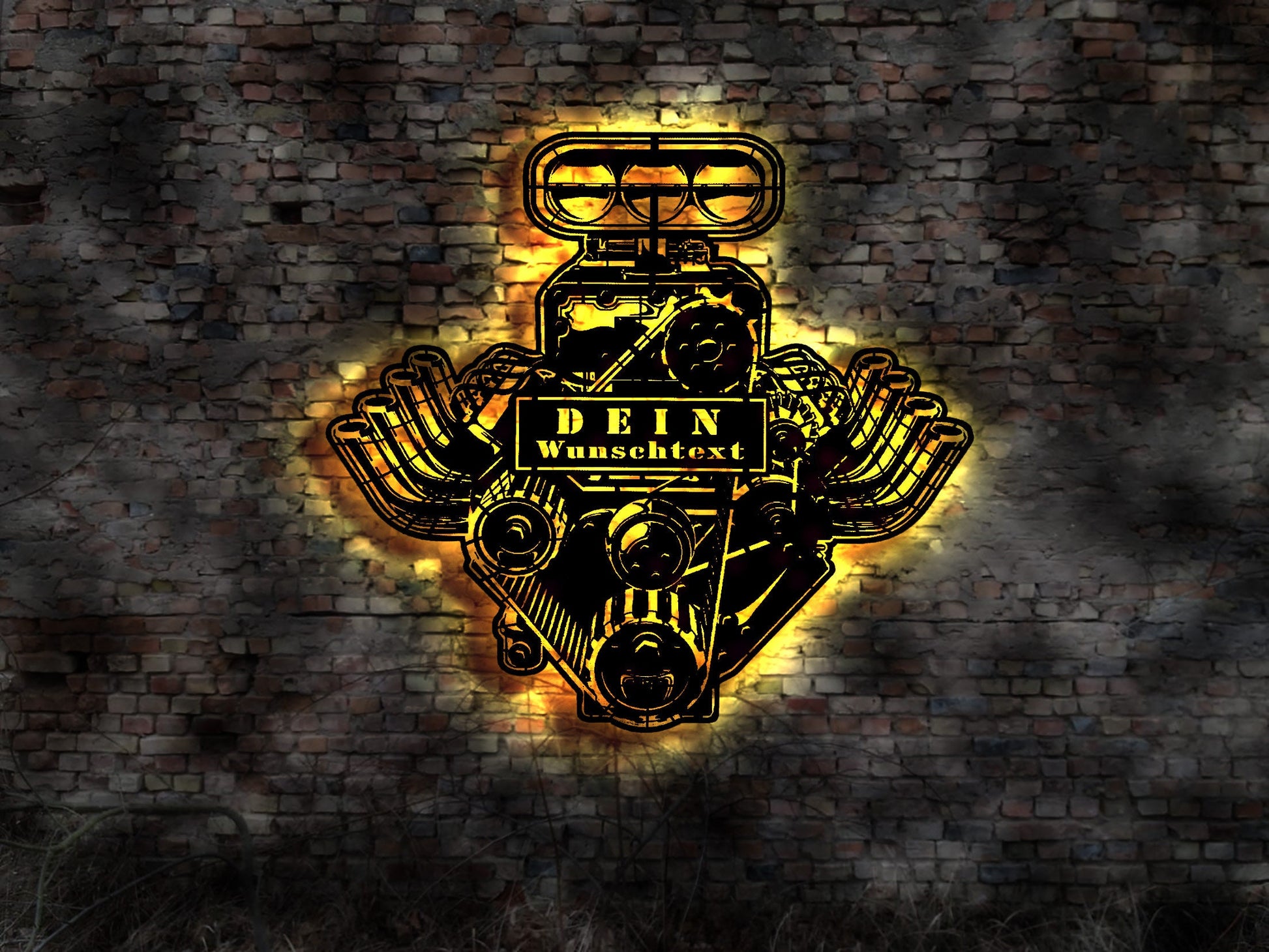 LED Wandbild V8 Big Blog Motor Engine KFZ-Motor-Stethoskop Diagnose Prüfer Tester Auto Mechaniker Stetoskop Mechatroniker Werkstatt Buch