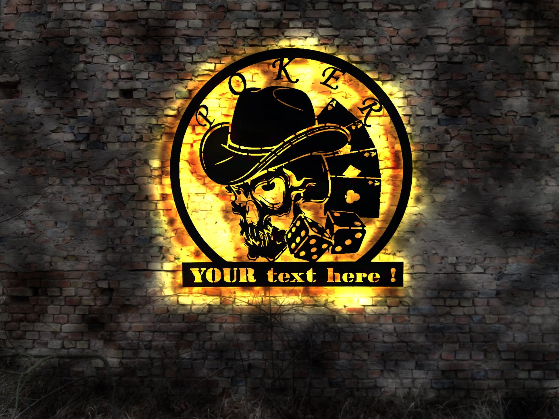 Made of wood. Sign will be hanged with a little distance to the wall.