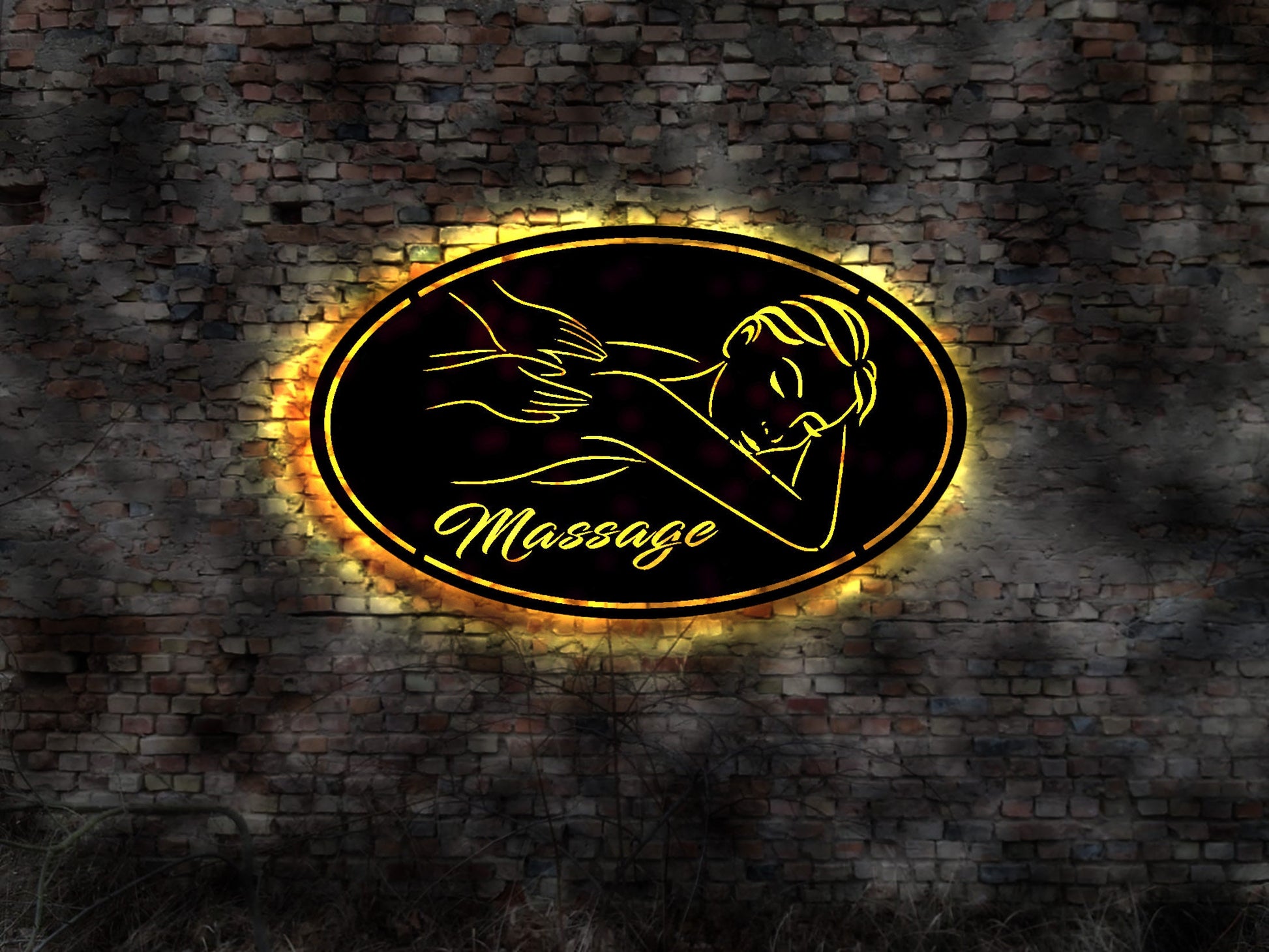 3D LED Wandbild Leuchtschild Massage Neon sign Neonreklame Liege Massageliege Buch Masseur elektrisches Masagekissen Massagestab