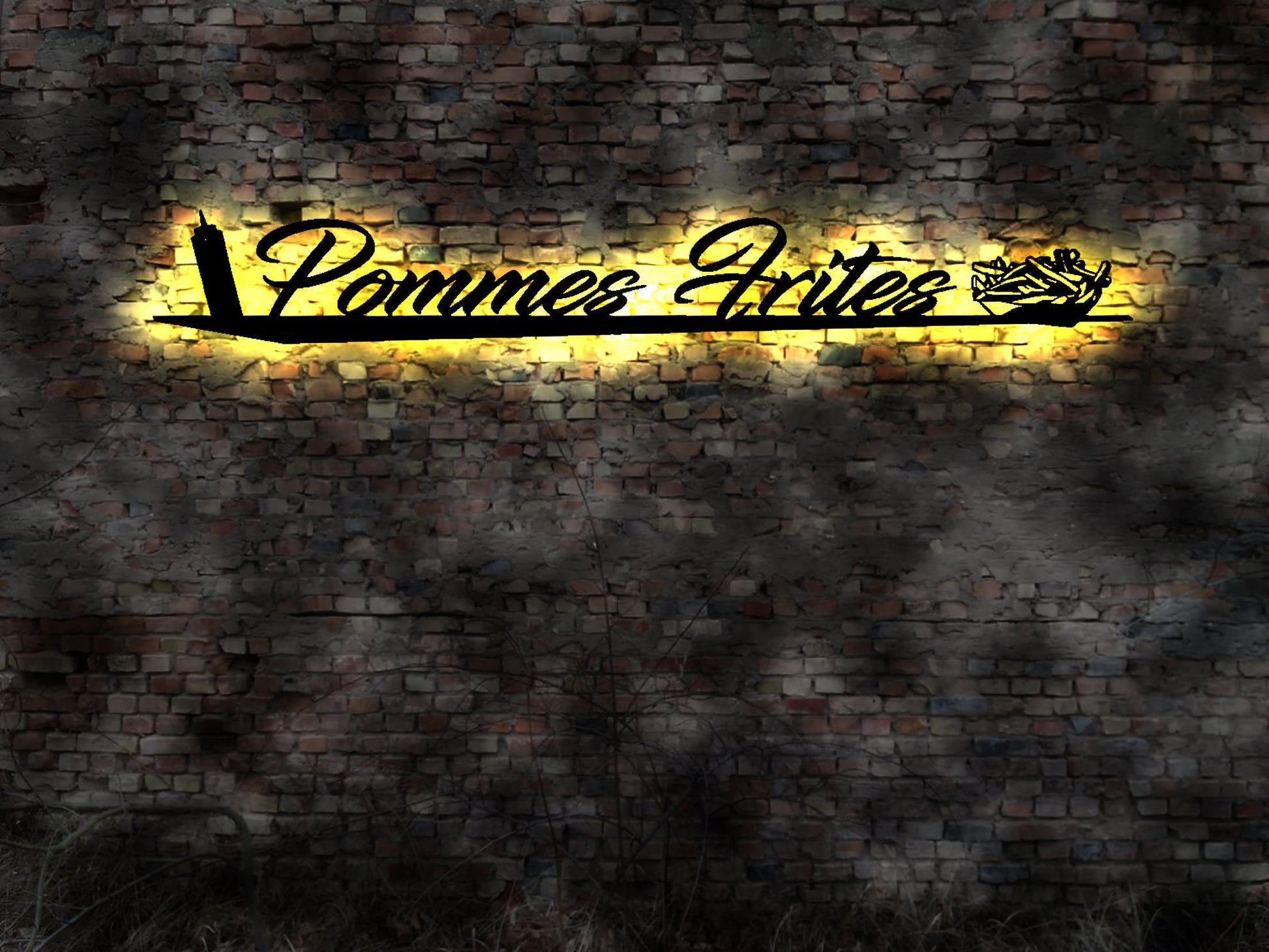 3D Wandbild Schild Pommes Frites Frittes Pomm Fritz Wandbild Pappschalen Majo Ketchup Imbiss Grill Spiesser Currywurst