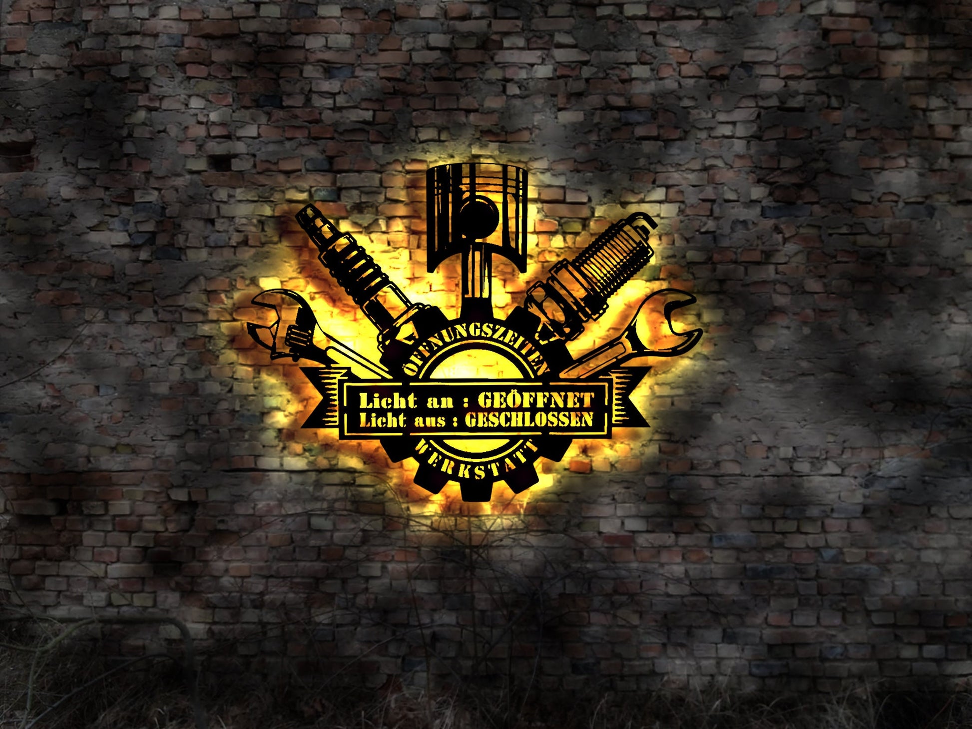 Öffnungszeiten KFZ Werkstatt Schild Reparatur Blechschild Auto Neon sign Neonreklame Buch Fahne Flagge 3D Aufkleber Motor V8 V6 KFZ