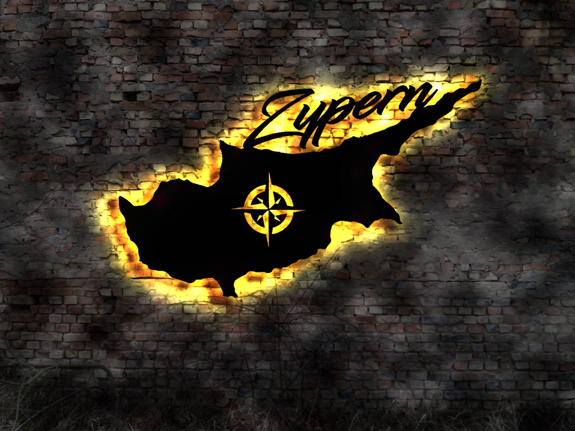 Bild Zypern Insel Urlaub LED Wandbild Holz Stadt AK Karte Map Wandsticker Leuchtbild Neonreklame Wandtattoo Reiseführer Silhouette