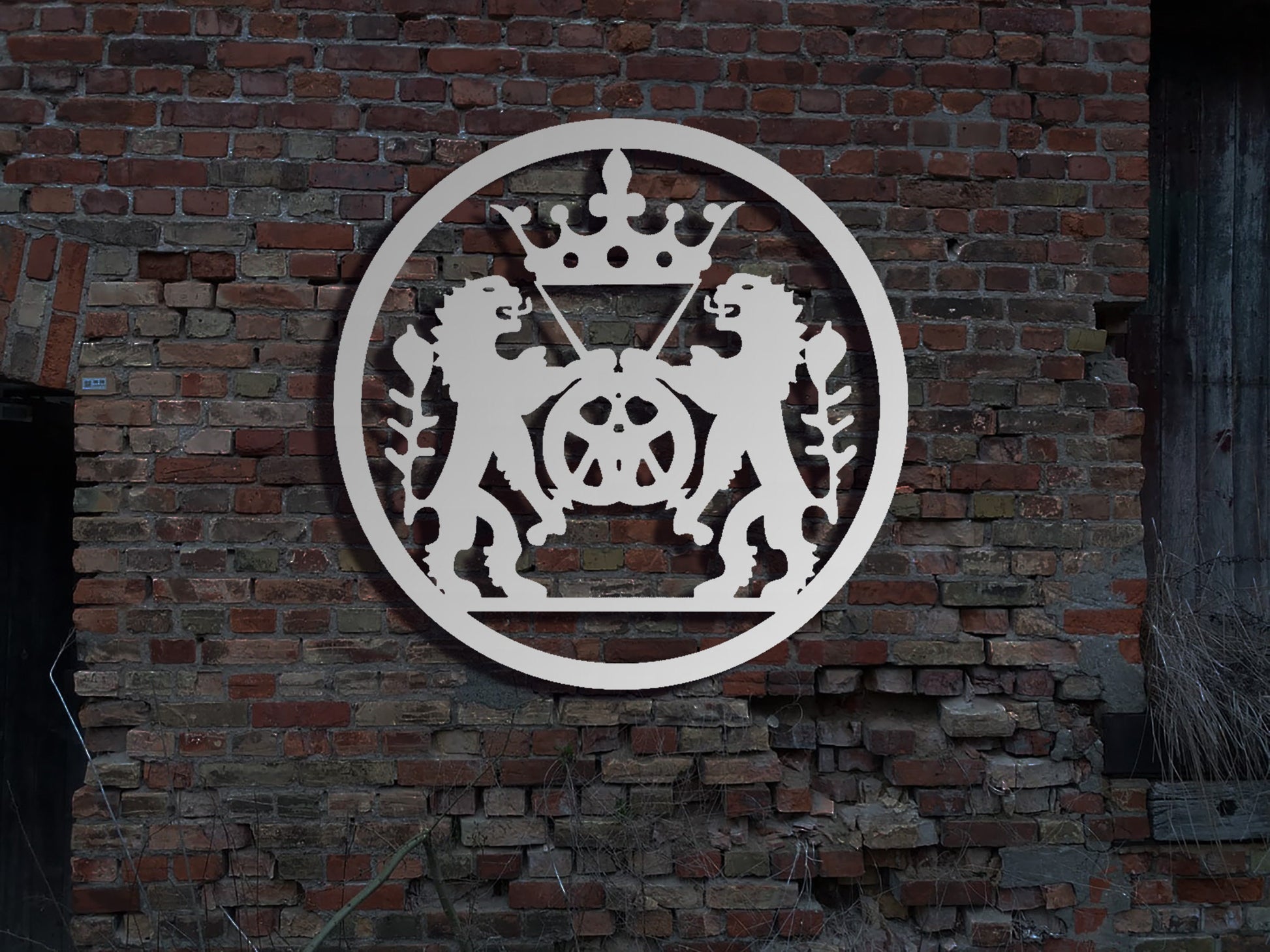 Edelstahl Wandbild Schild Bäcker Zunftzeichen Rund Innungsschild Logo Emblem Zeichen Zunft sign Metallschild Stahlschild