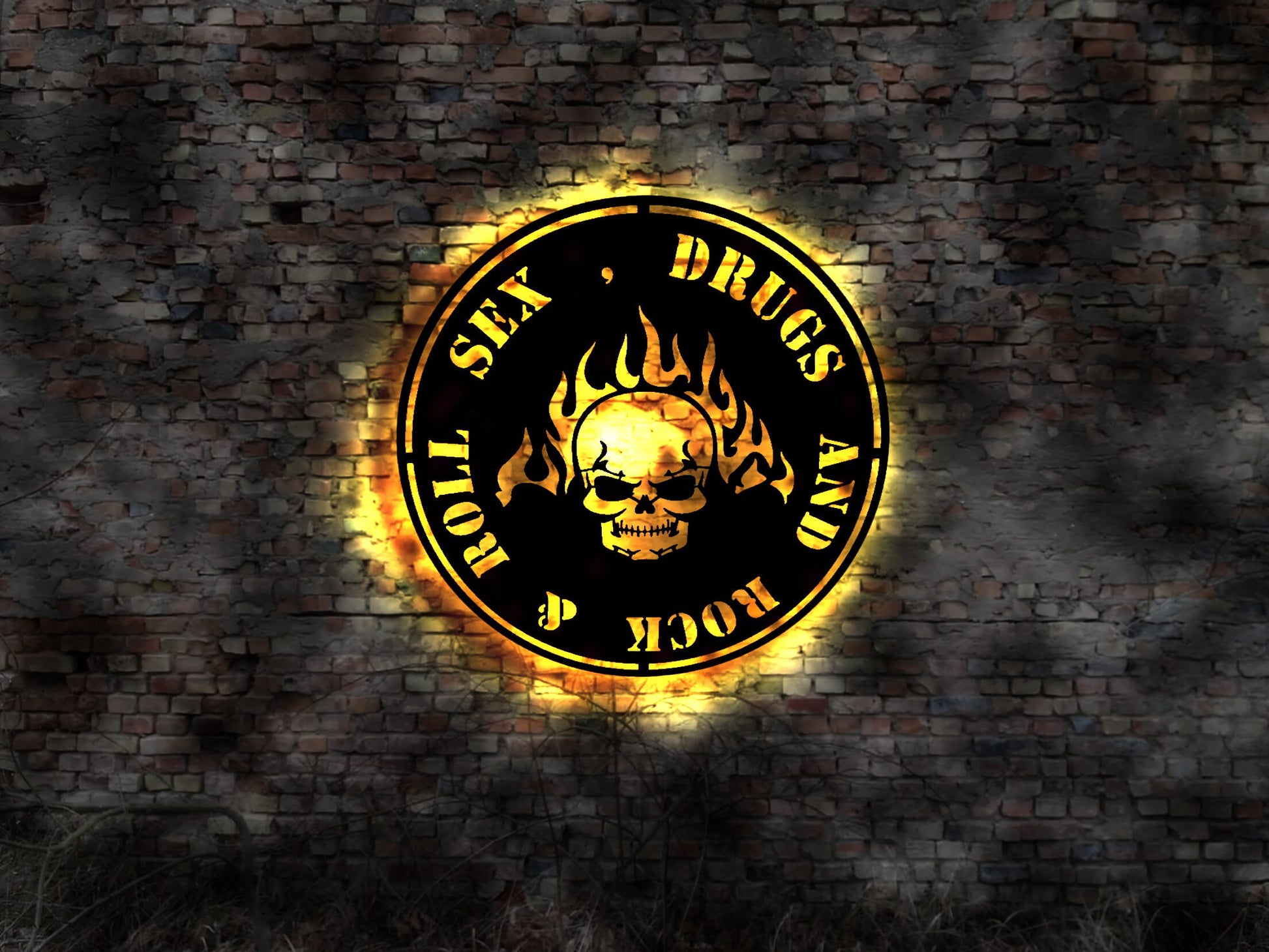 Hand Logo Rock and Roll Live Music Musik DJ Schild Gitarre LED Wandbild Neon sign Werbung Leuchtschild Bardeko Sex Drugs and Rock & Roll