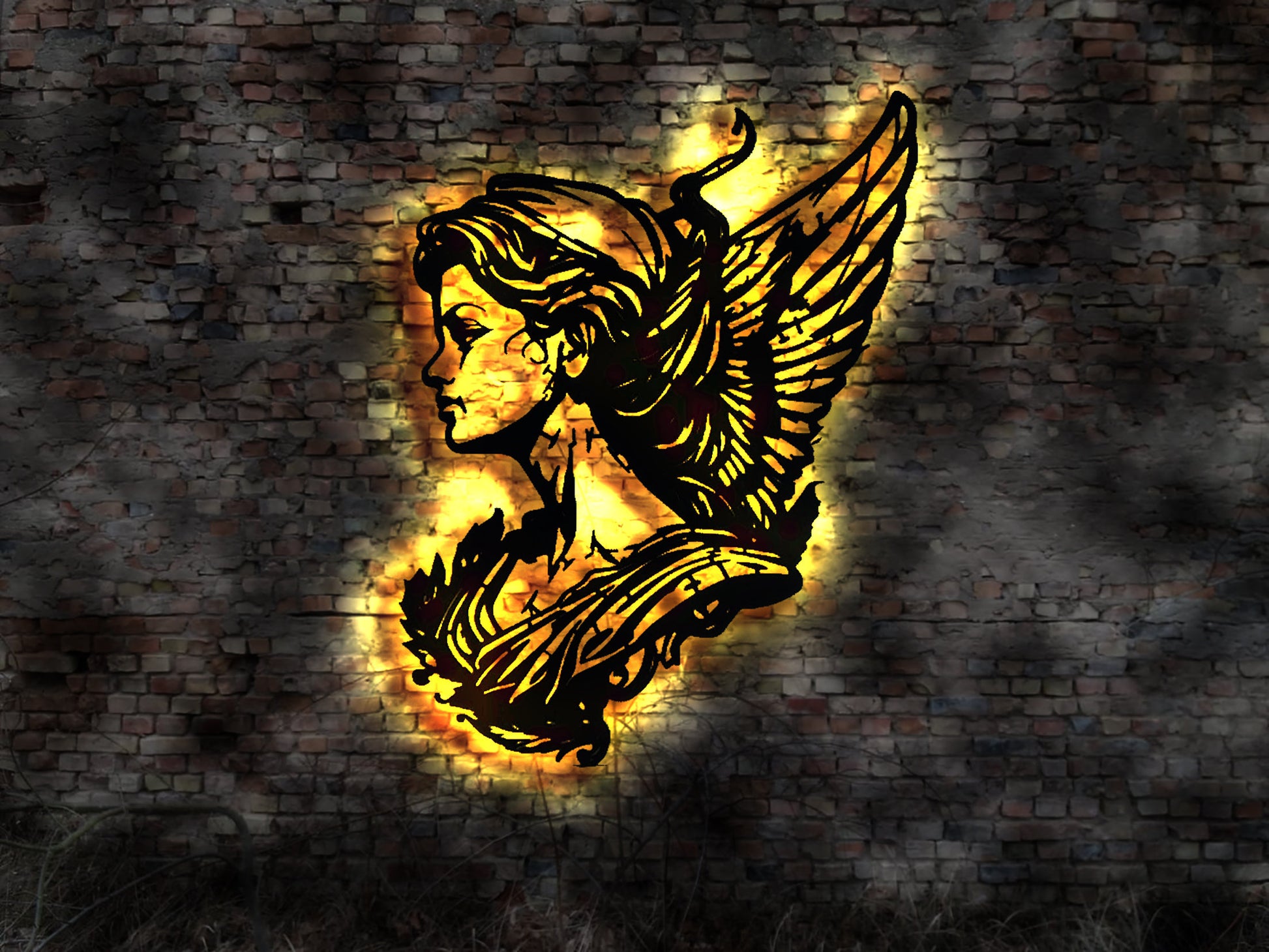 LED Wanddeko Wandbild Engel Frau Flügel Engelsflügel Wandtattoo beleuchtete Wanddekoration