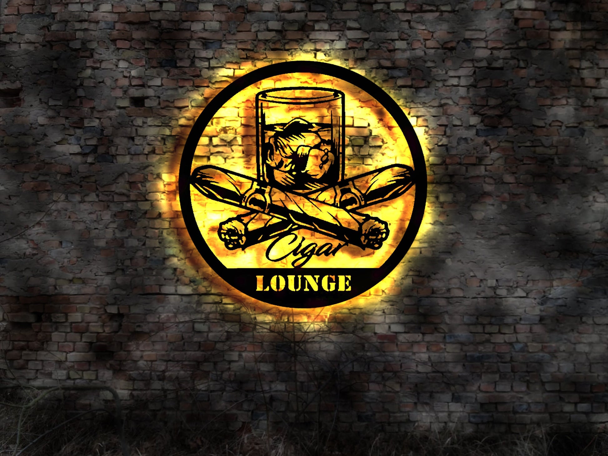 Leuchtreklame Cigar Zigarre Zigarren Lounge Smoking Raucherlounge Whiskey no Gläser bottle Fass Bar Tresen Holzfass Bottles sign Schild