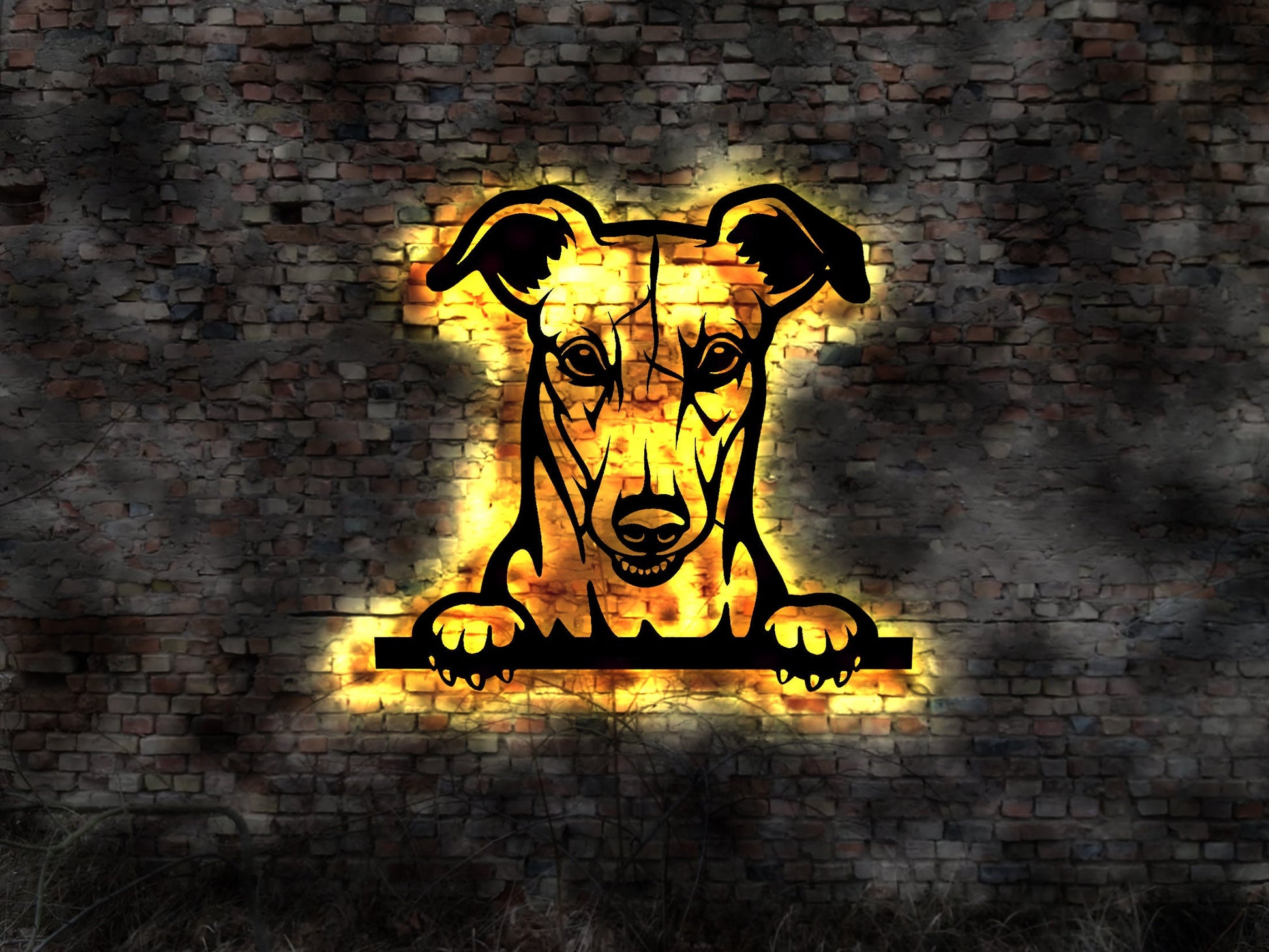 Windhund Wind Hund Sennenhund LED Wandbild aus Holz Welpen Welpe Buch Hund Dog Zucht Züchter Führleine Plüschtier Skulptur Spielzeug