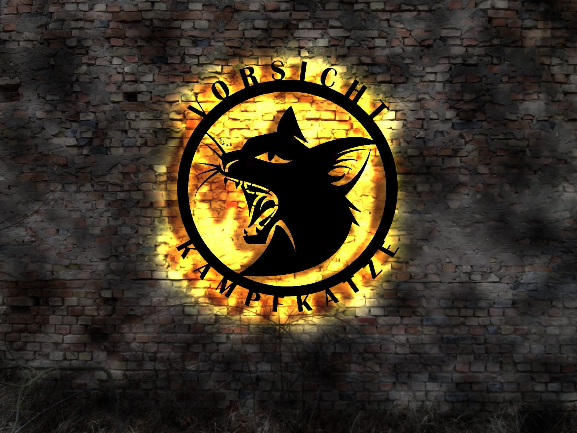 Vorsicht Katze Kampfkatze Schild no Blechschild Aluschild no Metallschild LED cat Mietzekatze Kater Katzen Spielzeug Zeichnung Malerei