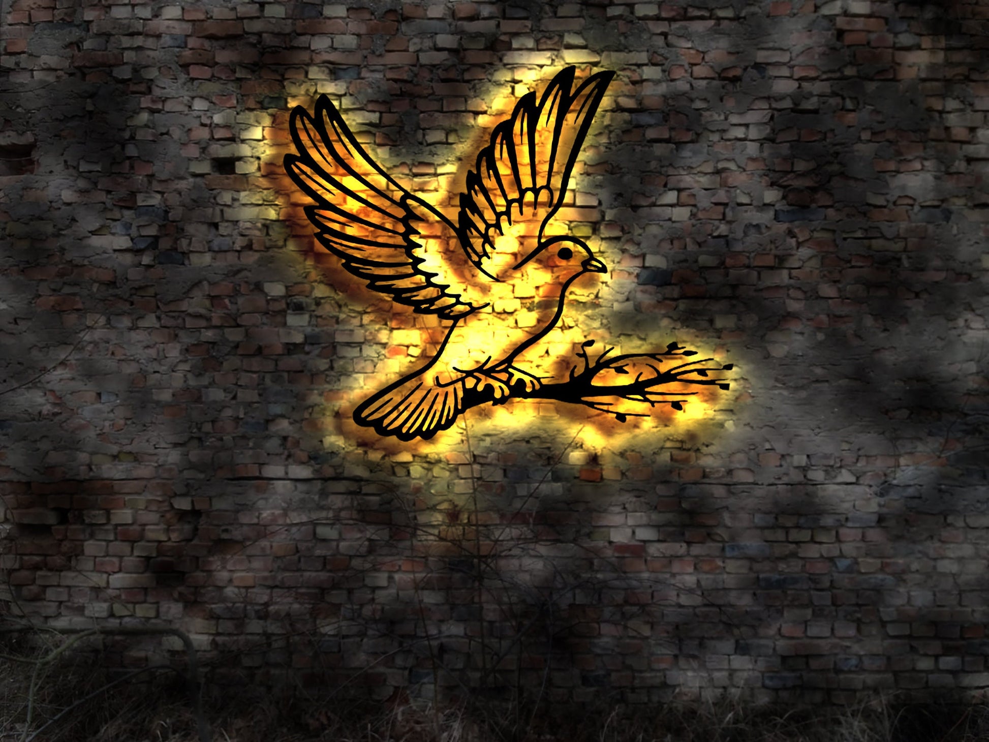 Das Wandbild hängt in einem Abstand von ca. 1 cm zur Wand, wodurch ein toller 3D-Effekt entsteht. Der warmweisse LED -Streifen hat 12 V und ist hinten im 90 Grad Winkel mit Schellen befestigt (geschraubt) , er kann bei Bedarf auch gewechselst werden.