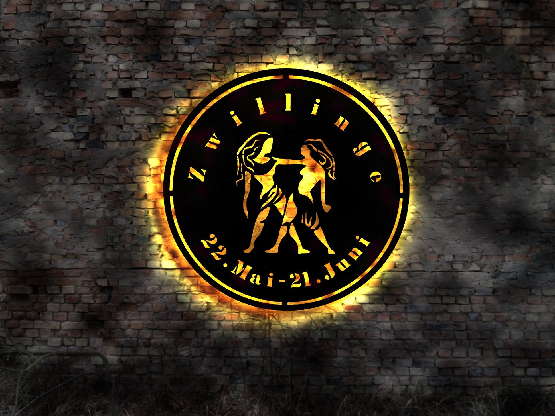 LED Wandbild Sternzeichen Horoskop Wandtattoo Aufkleber Neon Sign Zwillinge Zwilling Halskette Tierkreiszeichen Schild signWandtattoo Bild