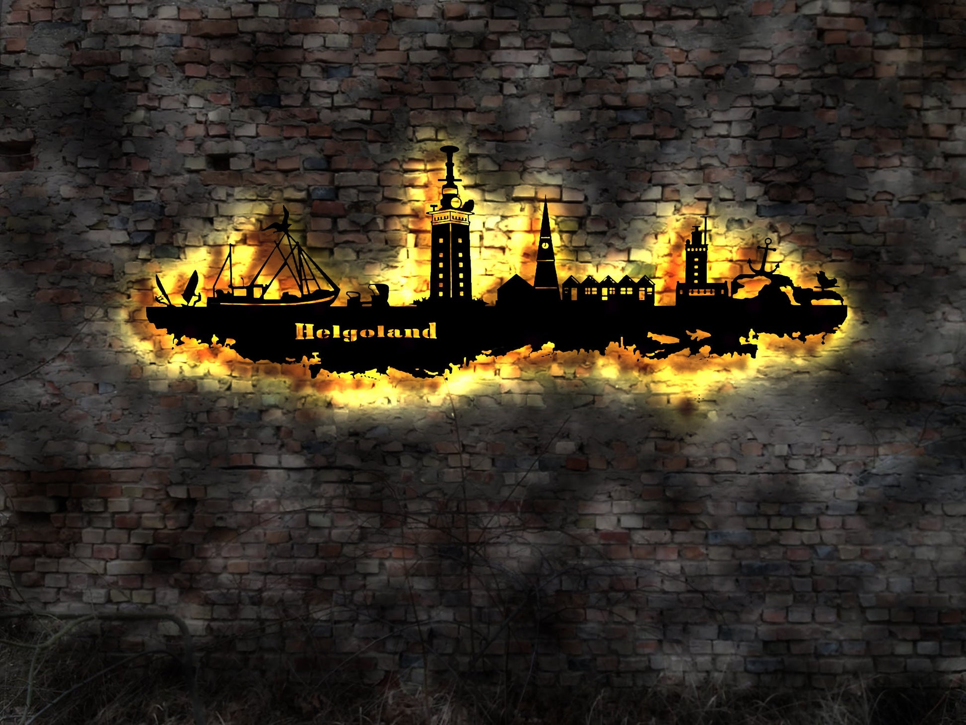 Skyline Helgoland Nordsee Urlaub LED Wandbild Holz Stadt AK Karte Map Wandsticker Leuchtbild Neonreklame Wandtattoo Reiseführer Silhouette