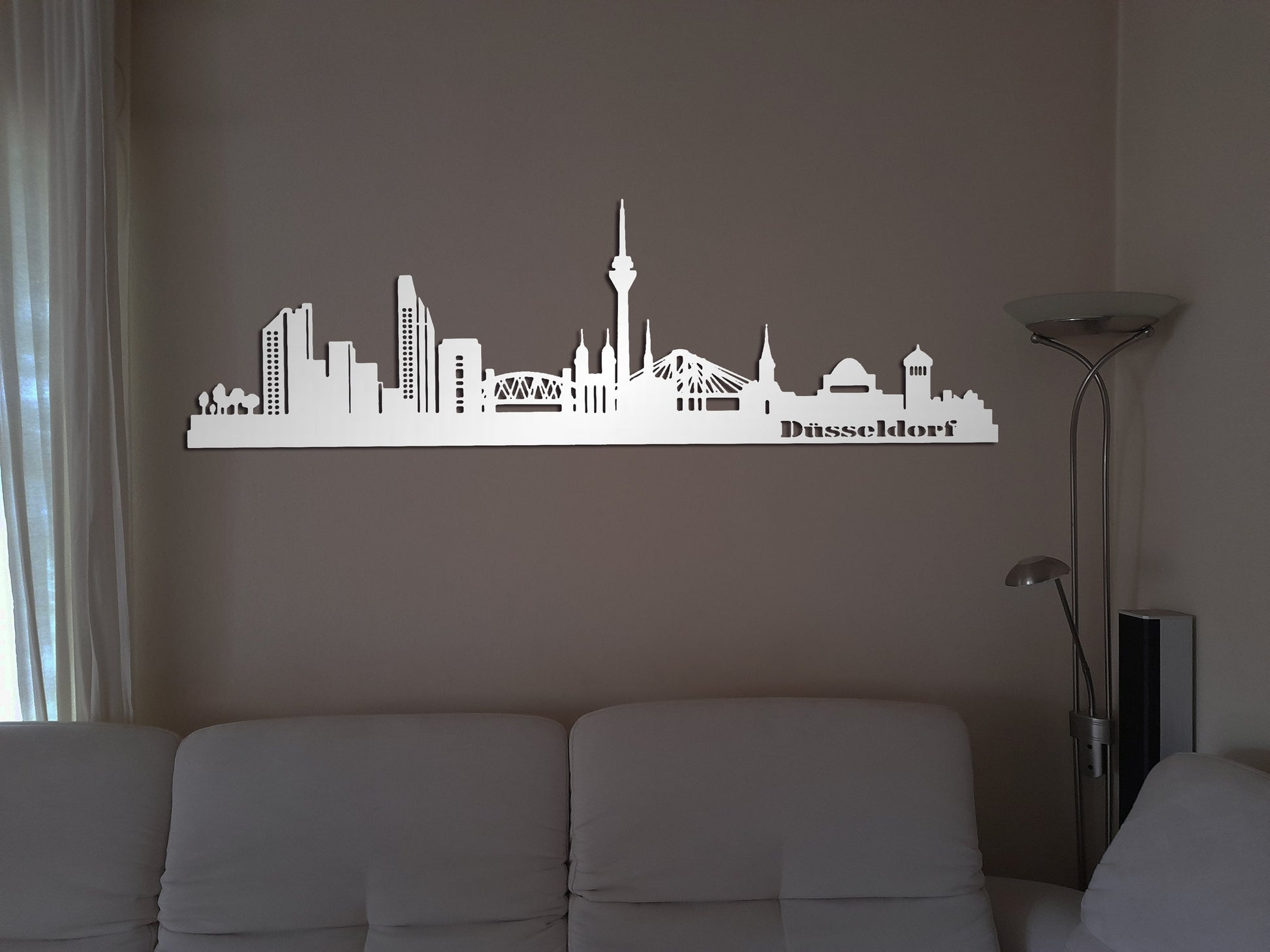 Edelstahl Skyline Düsseldorf Metall Wandkunst Stahl rostfrei Silhouette Metallkunst Künstlerarbeit