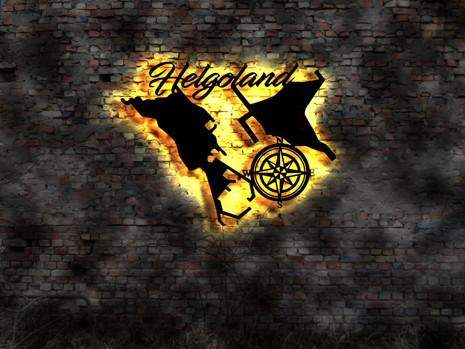 Skyline Helgoland Nordsee Urlaub LED Wandbild Holz Stadt AK Karte Map Wandsticker Leuchtbild Autoaufkleber Inselaufkleber Auto Silhouette