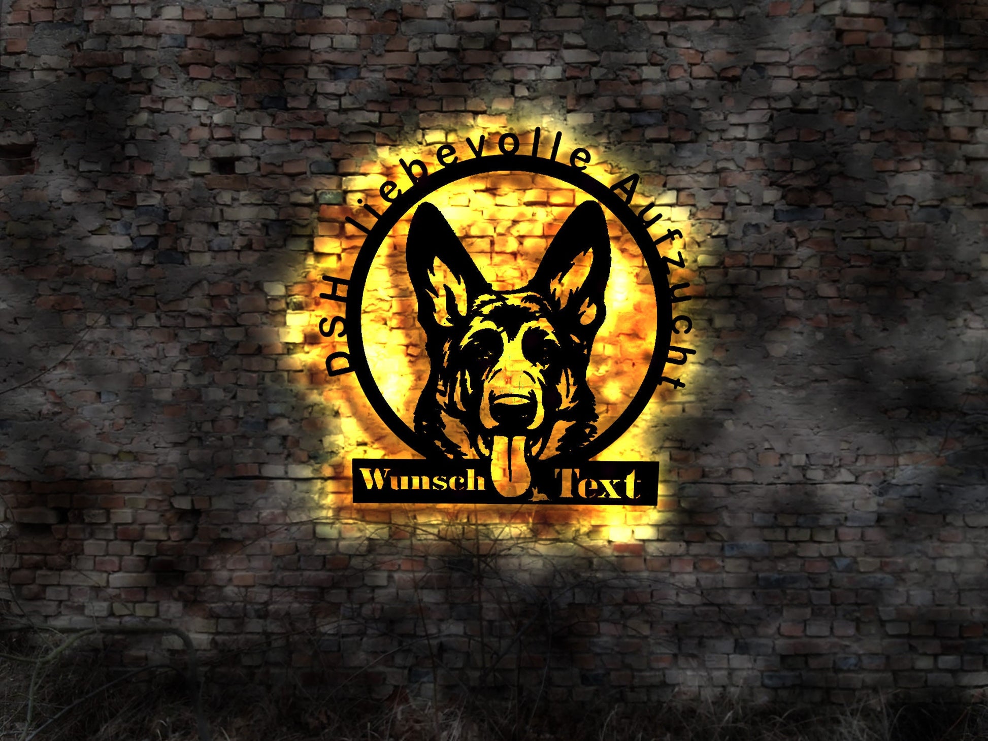 Deutscher Schäferhund DSH LED Wandbild aus Holz Welpen Welpe Buch Hund Dog Zucht Züchter Führleine Plüschtier Skulptur Spielzeug Zuchtverein