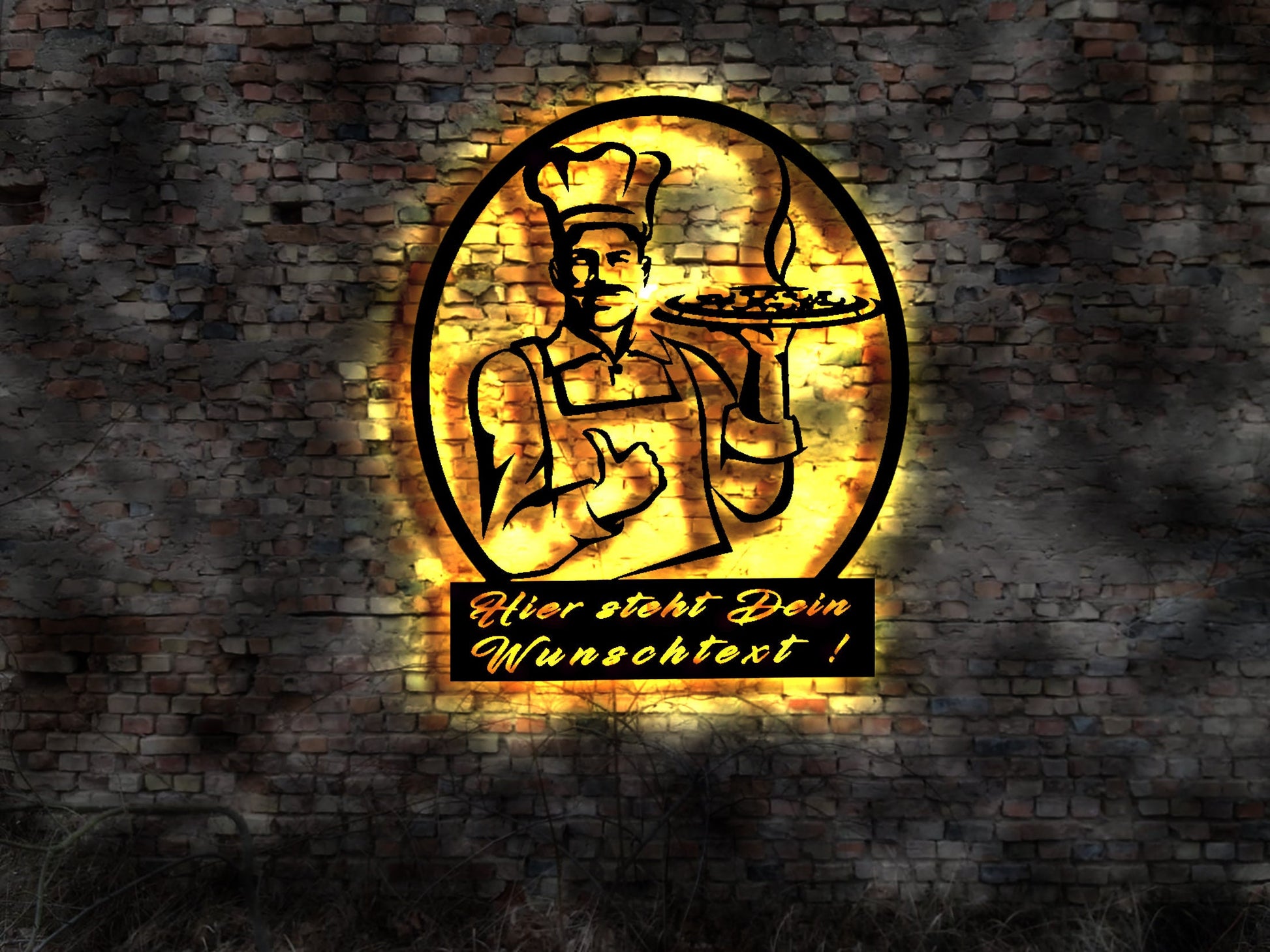 LED Wandbild aus Holz Burger Pizza Pizzeria Pizzaofen Pizzateller Steinofen Pizzableche Ofenschieber Pizzabäcker Rezepte Buch Pizzateig