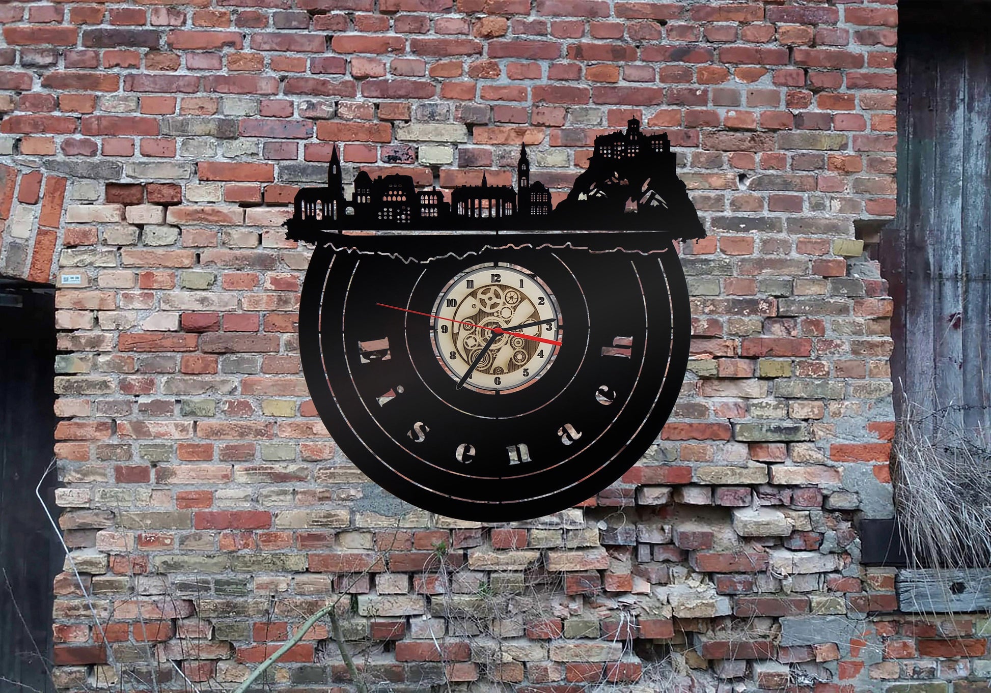 Uhr Stadt Eisenach LED Wandbild Holz Wandtattoo Silhouette