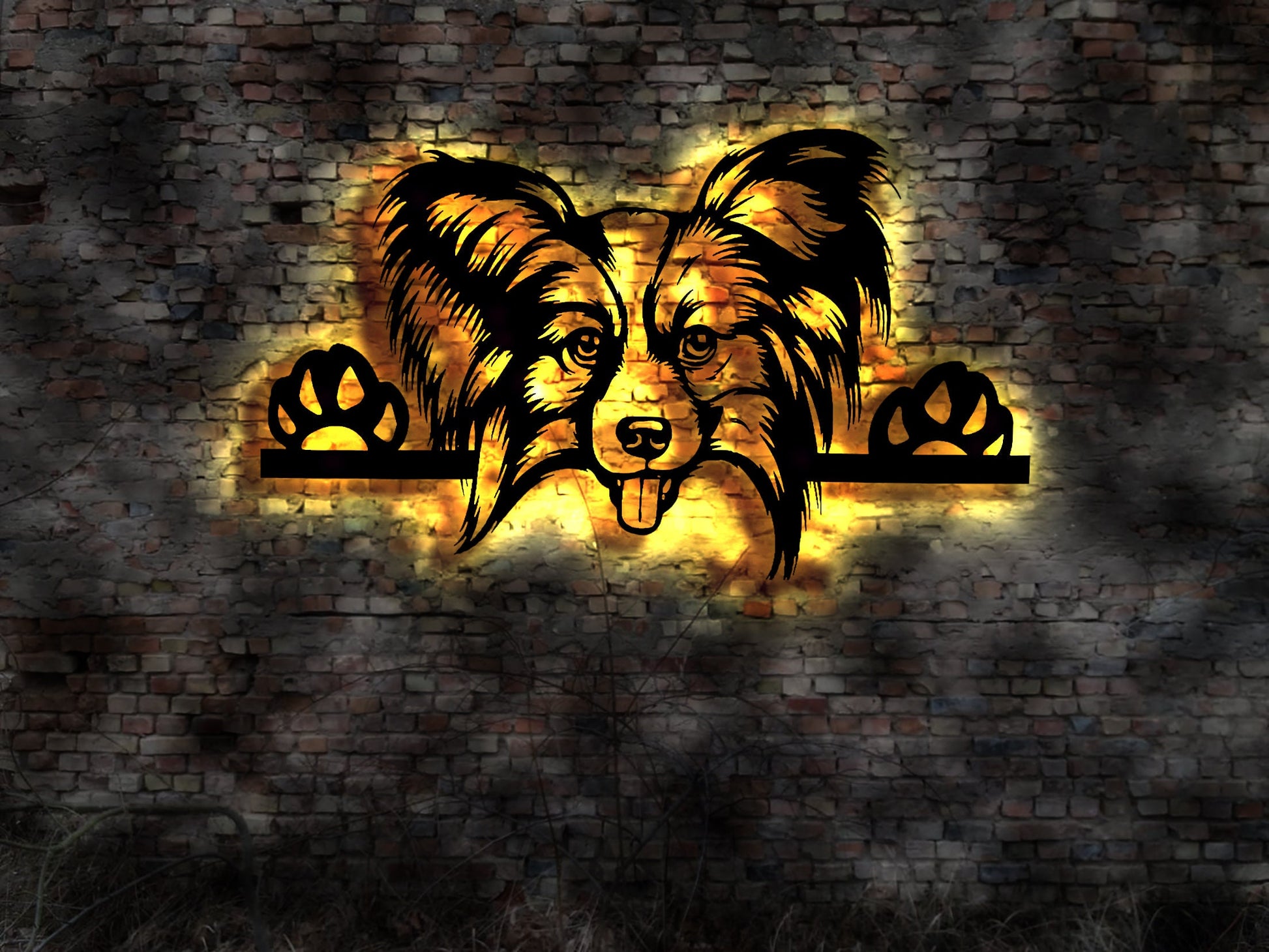 Papillon LED Wandbild aus Holz Welpen Welpe Buch Hund Dog Zucht Züchter Führleine Plüschtier Skulptur Spielzeug