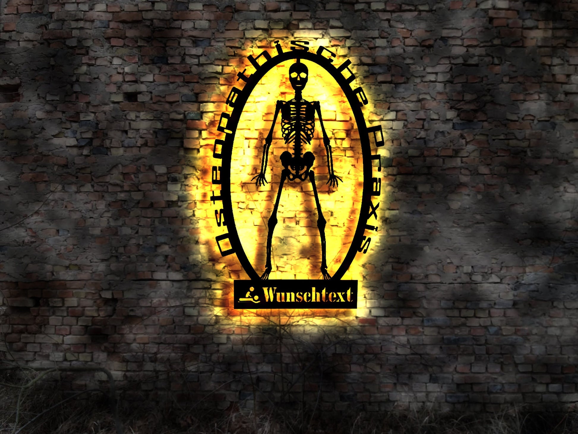 LED Wandbild Holz Osteopathie Leuchtschild Praxis Lehrbuch Liege Leitfaden sign Osteopathie T-Shirt Anatomie Osteophaten Skelett menschlich