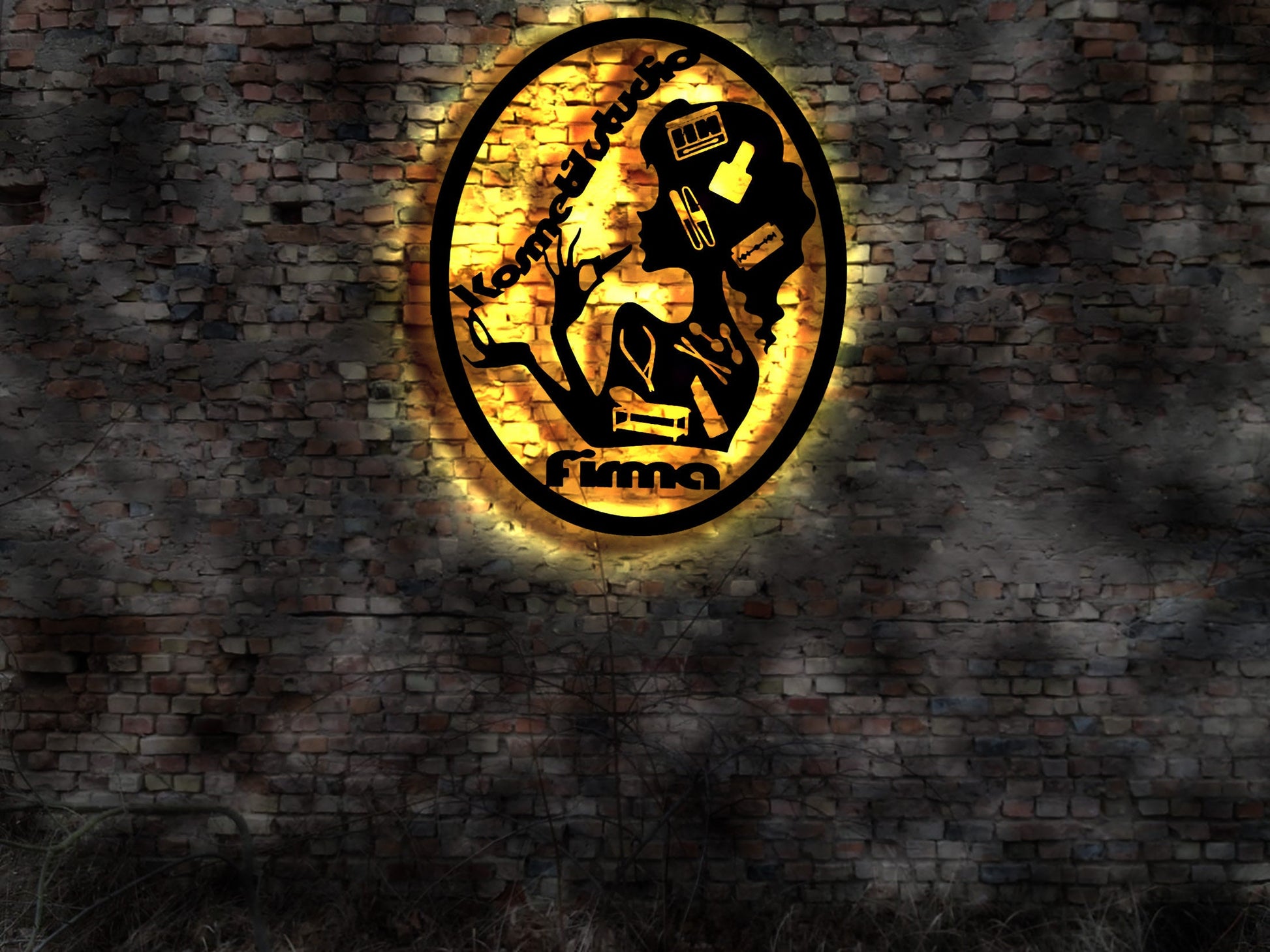 Made of wood. Sign will be hanged with a little distance to the wall.