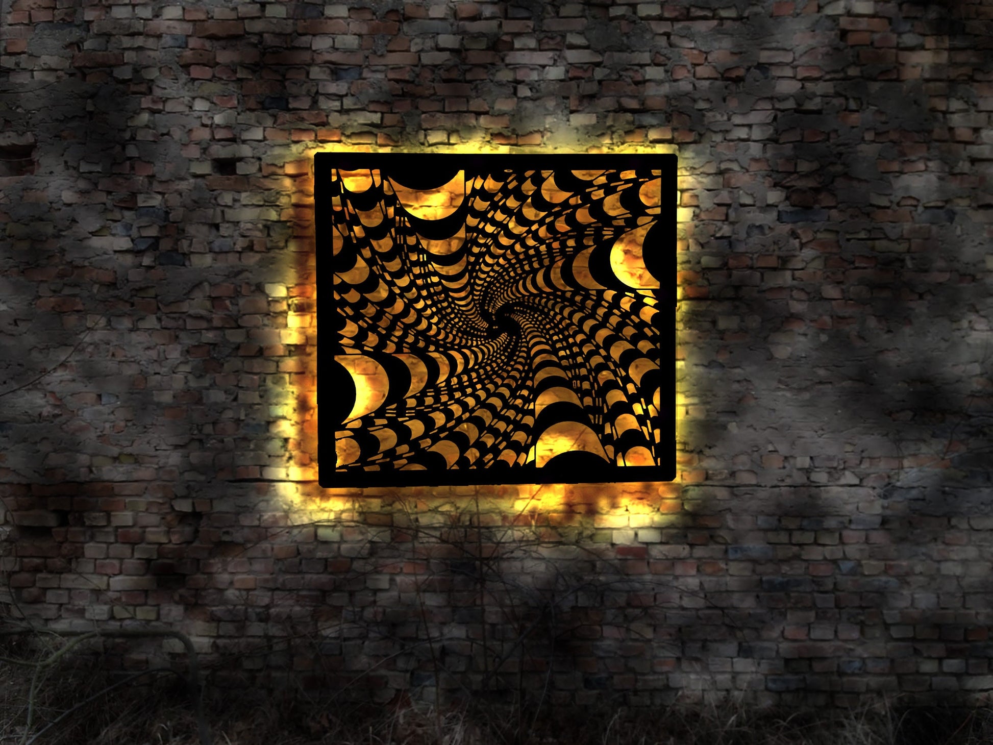 Das Wandbild hängt in einem Abstand von ca. 1 cm zur Wand, wodurch ein toller 3D-Effekt entsteht. Der warmweisse LED -Streifen hat 12 V und ist hinten im 90 Grad Winkel mit Schellen befestigt (geschraubt) , er kann bei Bedarf auch gewechselst werden.
