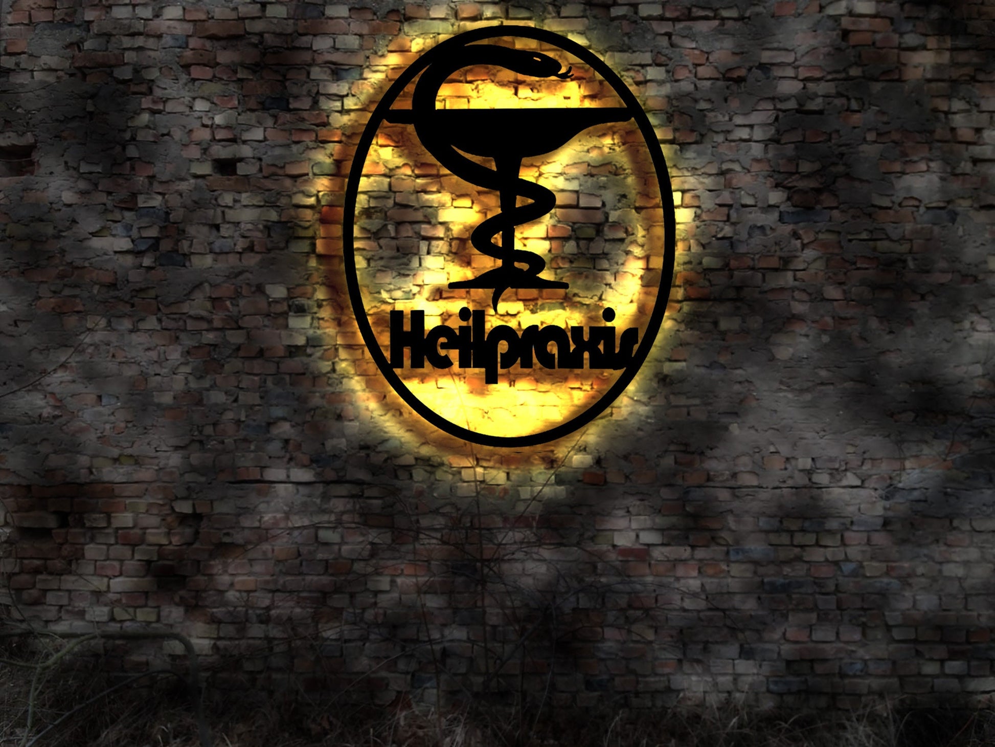 LED Wandbild Heilpraktiker Heilpraxis Schild Leuchtschild Firmenschild Deko Naturheilpraxis Heilsteine Medizin Natur DVD Musik Utensilien