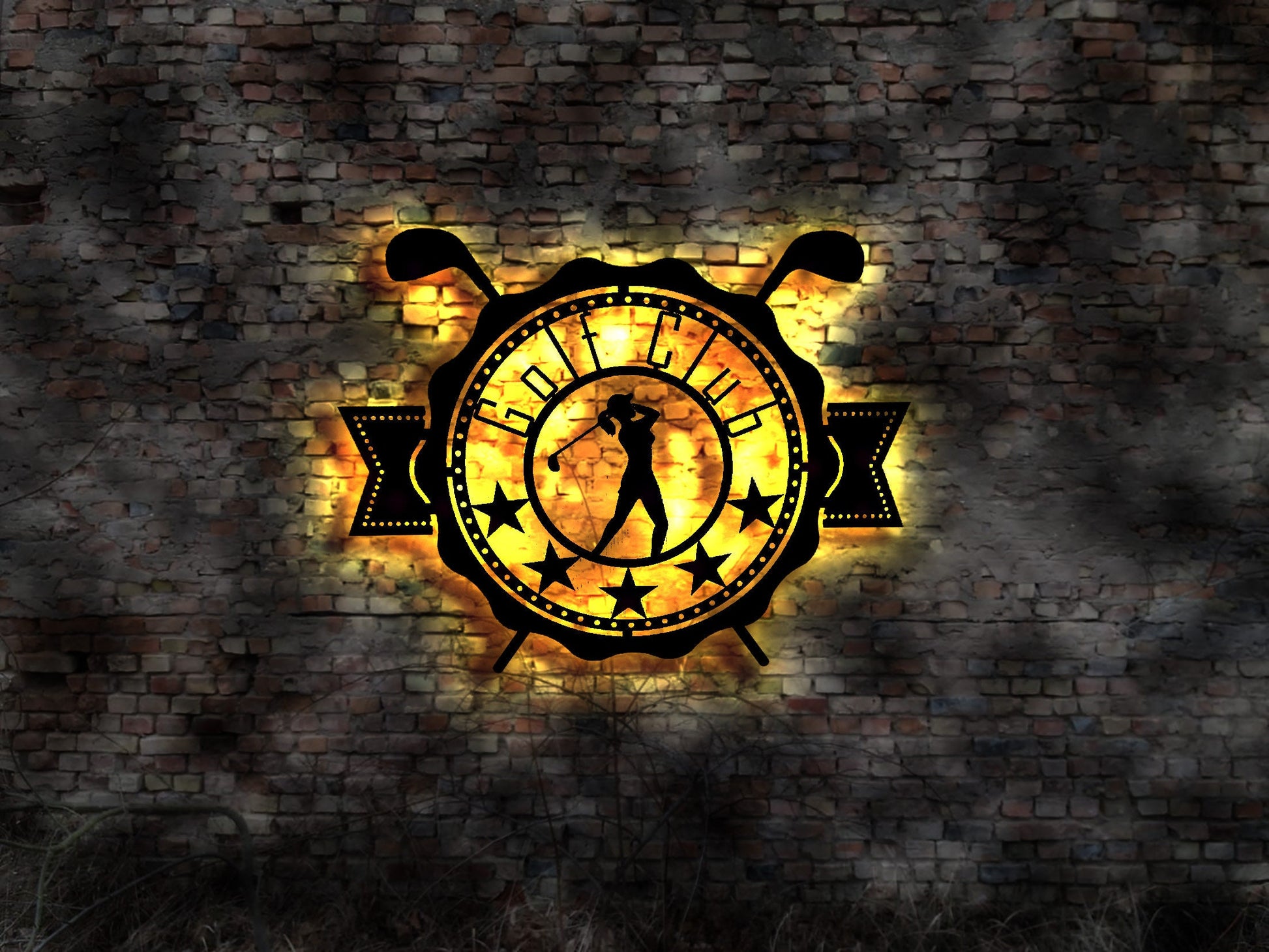Golf Sport Club Deko Ausrüstung Schläger Wagen Golfbälle Golftasche Golfschläger Leuchtschild LED Leuchtreklame sign Neonreklame Poster Bild
