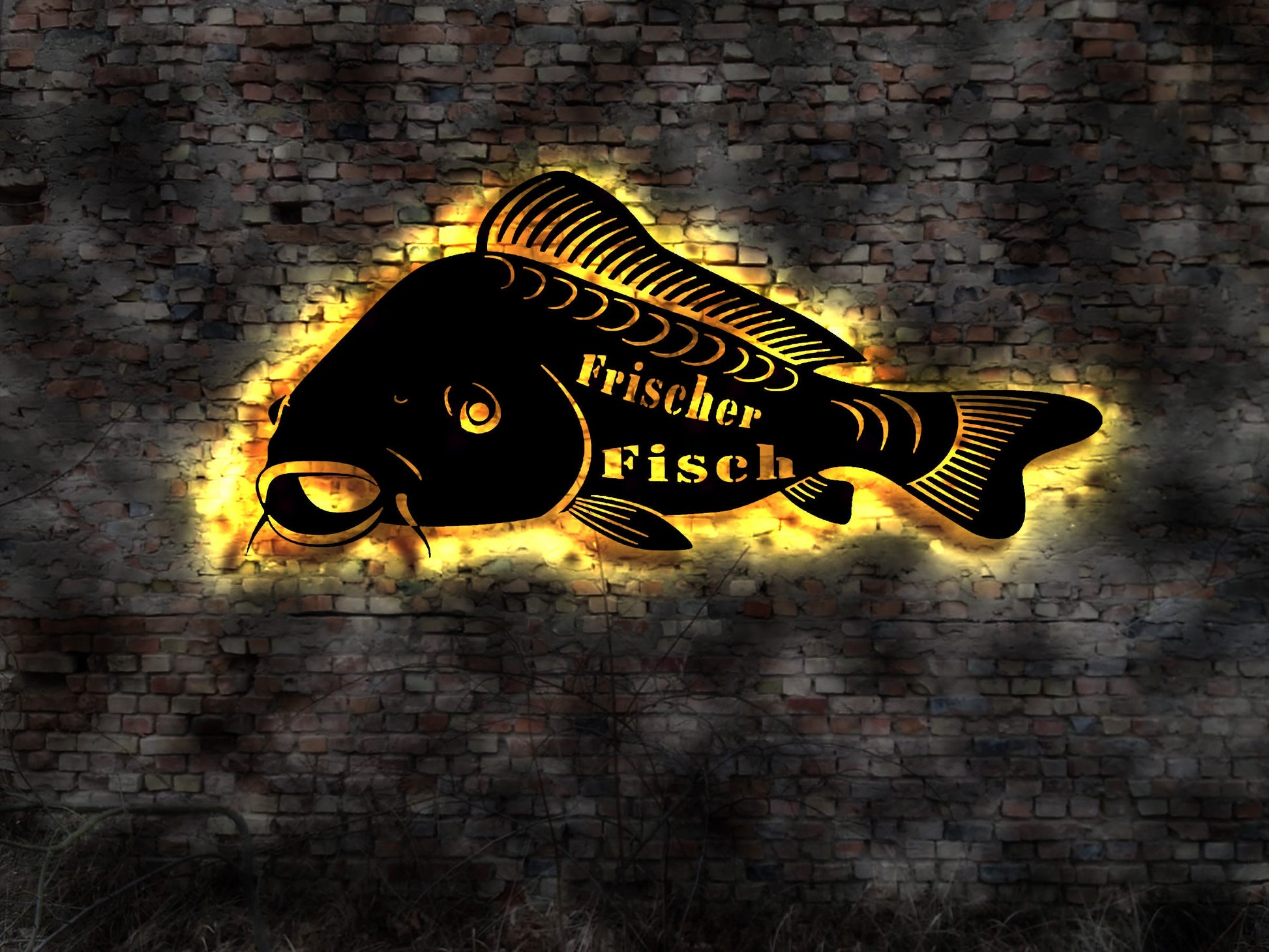 LED Wandbild frischer Fisch Fischer Fischerei Netz Angler Boot Reuse Buch Schild Ladengeschäft Fischladen Reuse Fangnetz Köder