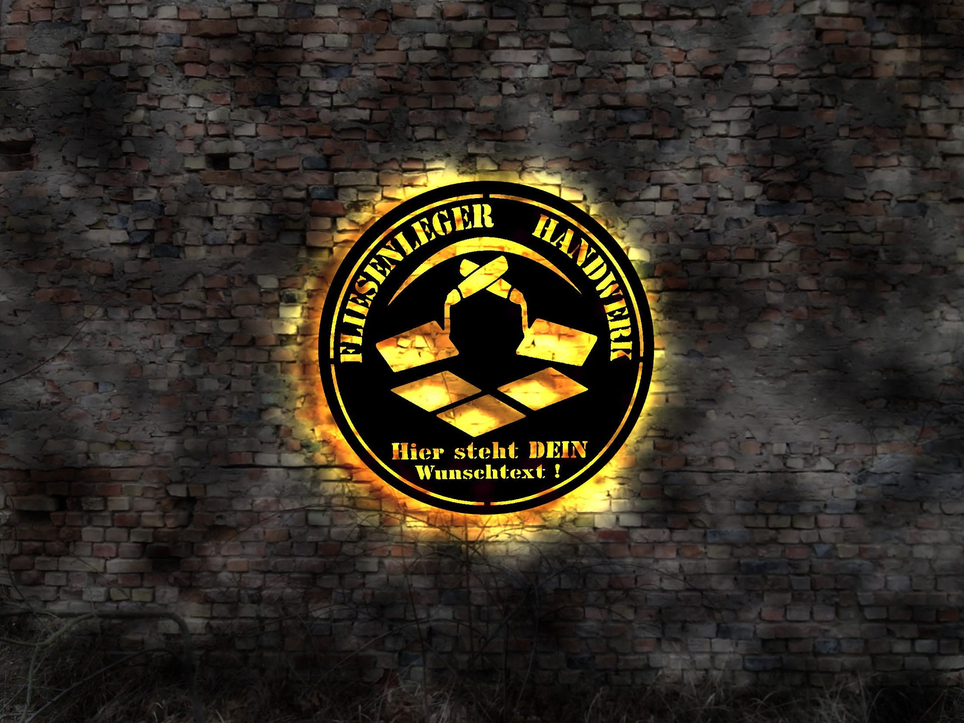 Fliesenleger Schild Reklame Zahnspachtel Fliesenschneider Knieschoner Firma sign Firmenschild Zahnspachtel Symbol Emblem Geschenk Idee