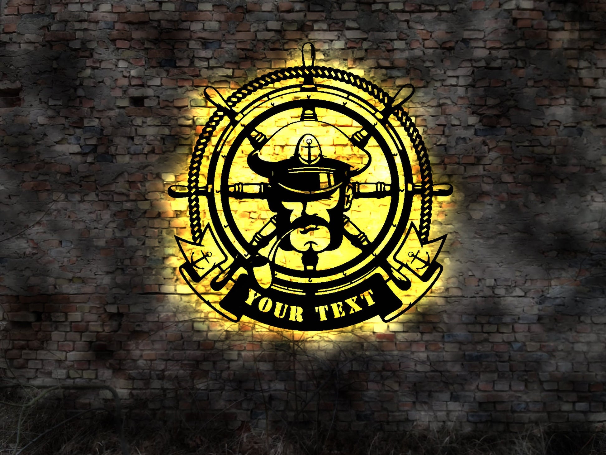 Bild LED Steuerrad Tau Segel Anker Seefahrer Kapitän Mütze Segelschiff Seefahrt Seemann Seeräuber Capitän Captain Logo Mütze Tattoo