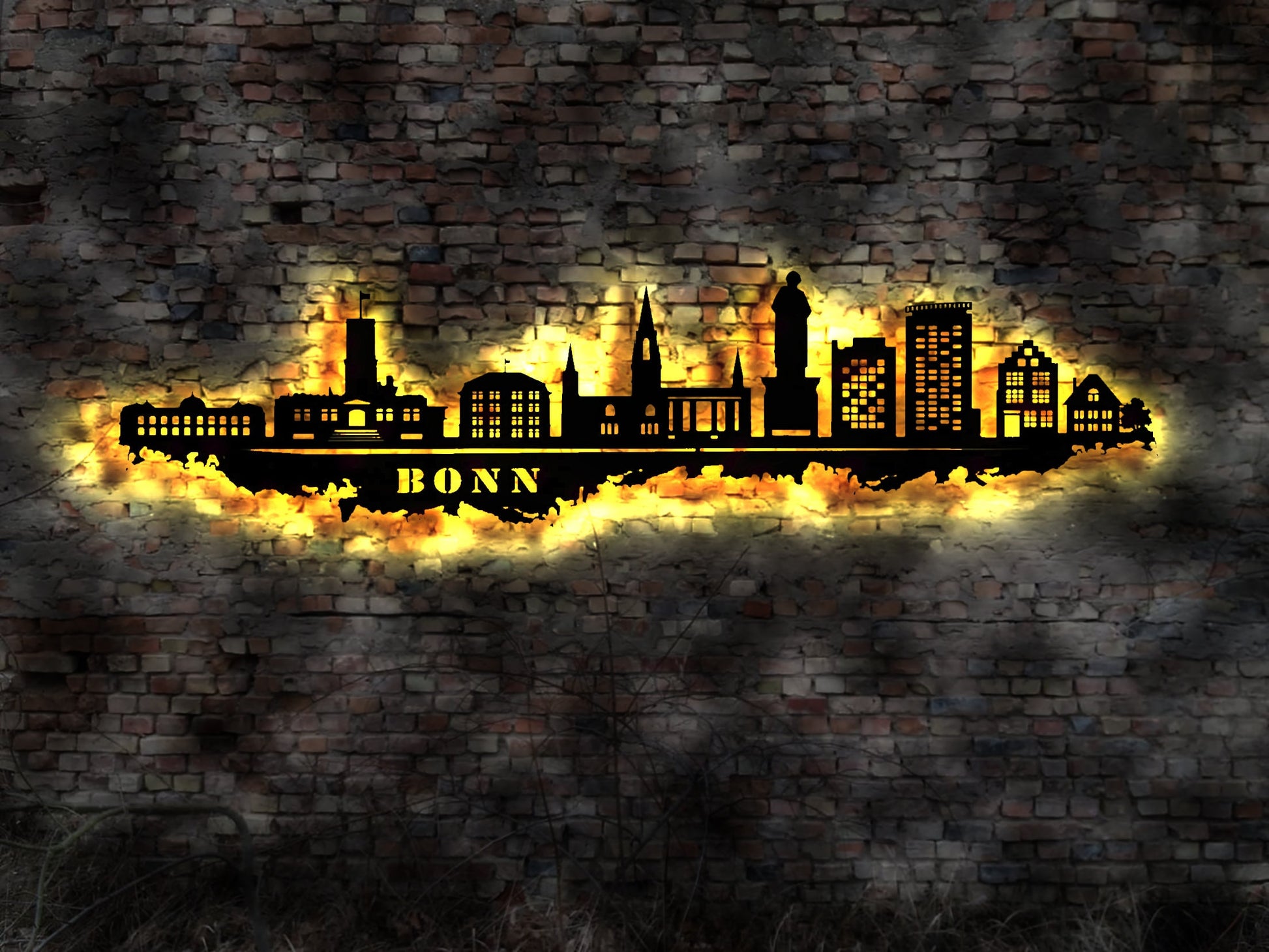 Skyline Bonn LED Wandbild Holz Stadt AK Karte Map Stadtplan Wandsticker Leuchtbild Neonreklame