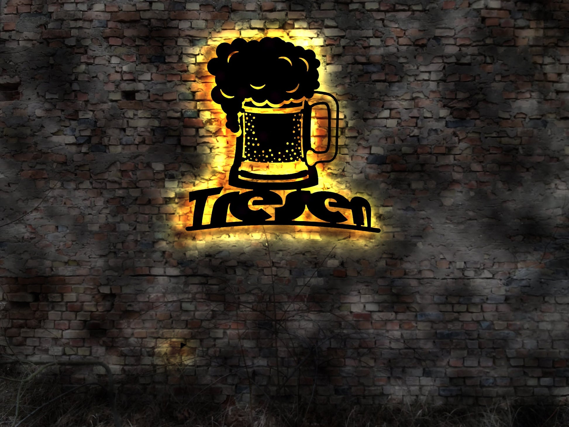 Made of wood. Sign will be hanged with a little distance to the wall.