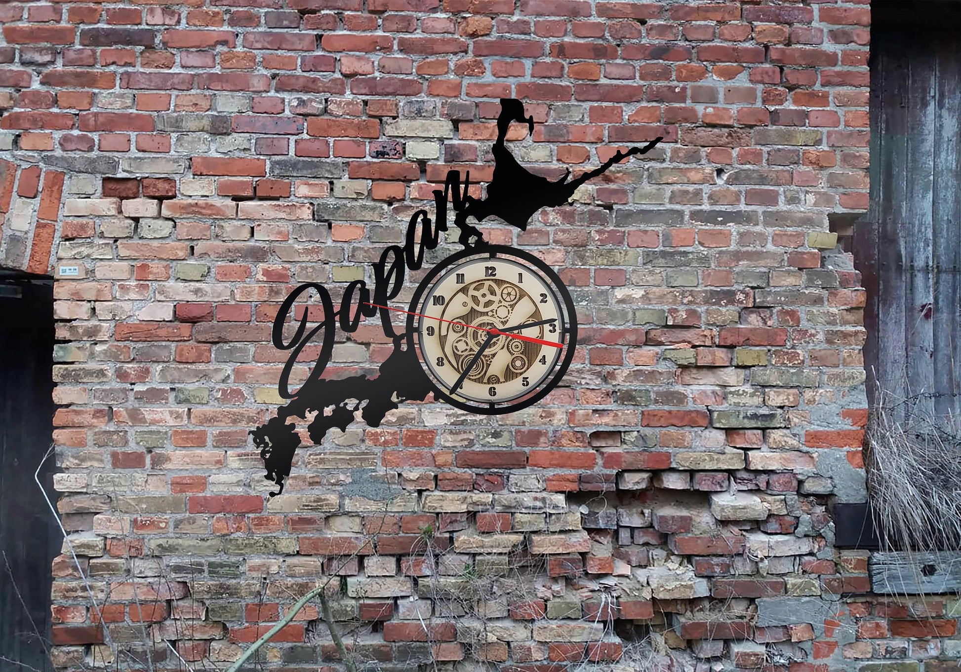 Land Japan Japanese Wanduhr Uhr Holzuhr Uhren Ziffernblatt Clock Holz Armbanduhr Skyline Silhouette Aufkleber